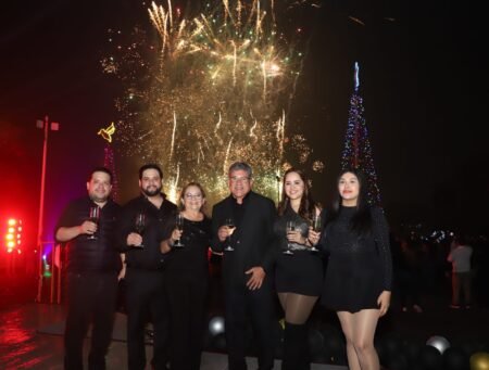 Con un espectáculo que quedará en la memoria de los altamirenses, el municipio dio la bienvenida al 2025 en un evento encabezado por el alcalde, Dr. Armando Martínez Manríquez, acompañado de su esposa, la presidenta del DIF Altamira, C.P. Rossy Luque de Martínez, y familia. La celebración tuvo como escenario principal la Isla de la Esperanza, con el puente flotante iluminado y un impresionante show de fuegos artificiales musicalizados.