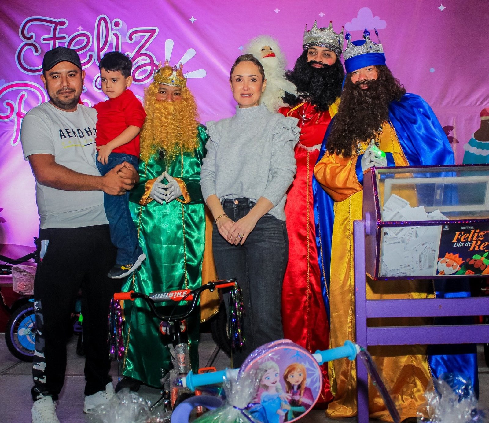 Cientos de niñas y niños maderenses participaron de un gran festejo del Día de Reyes, que fue organizado por el Sistema DIF Madero en coordinación con el Gobierno Municipal; evento desarrollado la tarde de este jueves en el auditorio de la Unidad Deportiva de esta localidad. Al encabezar este festejo, la Sra. Ana Cristina Organista de Oseguera, Presidenta del DIF en la urbe petrolera, reiteró su compromiso de garantizar el bienestar de la niñez maderense, por lo que – dijo- trabajamos todos los días con mucho amor y cariño, para seguir construyendo un municipio donde crezcan seguros, felices y con mayores oportunidades de desarrollo. En su mensaje Organista de Oseguera refirió: «Hoy me da mucho gusto compartir con todos ustedes este maravilloso festival de Día de Reyes, los Reyes Magos han llegado desde el Oriente para traerles muchos regalos, sorpresas, pero sobre todo muchísima diversión, porque ustedes son lo más importante para nosotros». Asimismo, aprovechó para desearles a los asistentes al evento un 2024, lleno de dicha, unidad y bendiciones.Cabe señalar, que los pequeños gozaron al máximo de esta increíble convivencia, además de las presentaciones del show de Fabulous Kids, Bely, Beto y Pepo, el payaso Ajolotito, el Mago Ron, así como del musical de Luli Pampín y de los invitados especiales los tres Reyes Magos, Melchor, Gaspar y Baltazar.La Presidenta del DIF Municipal cortó la tradicional rosca de reyes y posteriormente realizó la rifa de regalos que constó de bicicletas, triciclos, tablets y una variedad de juguetes.»Estoy muy contenta de compartir la unidad que simboliza esta rosca de reyes y de caminar juntos por la ruta de la transformación, la paz y el desarrollo de nuestro querido municipio «, expresó. Finalmente la Sra. Ana Cristina, reiteró el compromiso del DIF Madero y del Gobierno Municipal que encabeza su esposo el alcalde Adrián Oseguera, por preservar las tradiciones que unen a las familias y  especialmente en seguir trabajando por el bienestar de las niñas y niños maderenses.