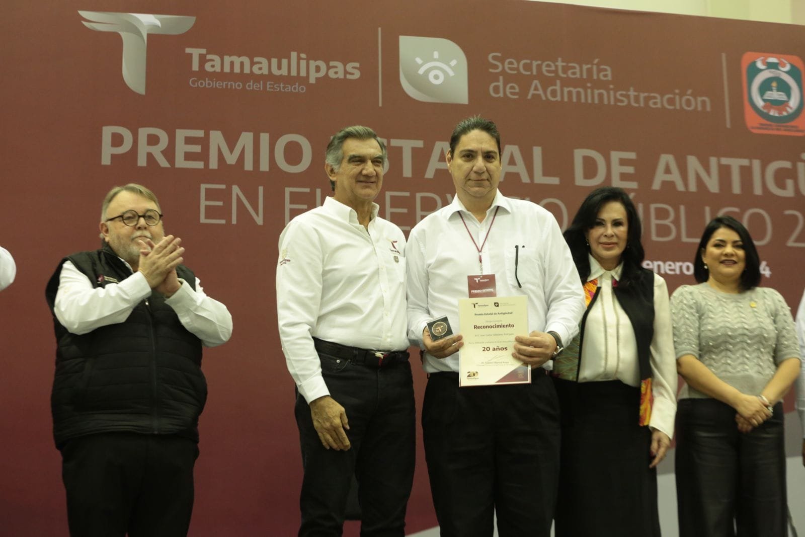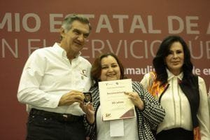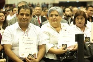 Ciudad Victoria, Tamaulipas.- Los trabajadores al servicio de los Poderes del Estado de Tamaulipas recibirán un incremento gradual en el salario de hasta un 20 por ciento y, por indicaciones del gobernador Américo Villarreal Anaya, estos beneficios se extenderán a los trabajadores extraordinarios y de confianza, además de que se autorizó un incremento en los diversos bonos que reciben, incluyendo 5,050 pesos por concepto de canasta básica. “Yo me sumo a este gran reconocimiento de los incrementos salariales que se dan a la base trabajadora como un principio de justicia social”, expresó el gobernador Américo Villarreal al encabezar la ceremonia del Premio Estatal de Antigüedad en el Servicio Público en la que entregó de manera simbólica 19 premios de un total de 1,308 entregados a servidores públicos, con una antigüedad de 20 y hasta 55 años de trabajo en el Gobierno del Estado. De manera especial, el gobernador entregó un reconocimiento por 55 años de servicio a Gregorio González Rodríguez, de la Oficina del Ejecutivo y a Emilio Rodríguez Montantes, del Instituto Tamaulipeco para la Cultura y las Artes, así como el reconocimiento por 50 años a Francisca Monreal García y a Benito González Delgado, ambos de la Secretaría de Finanzas.En la ceremonia celebrada en el Polyforum de esta capital y acompañado por la secretaria general del SUTSPET, Blanca Valles Rodríguez y los titulares de los Poderes Legislativo, la diputada Úrsula Salazar Mojica, y Judicial, magistrado David Cerda Zúñiga, el gobernador reiteró que todas las políticas públicas emanadas de su administración siempre estarán centradas en buscar el beneficio a las personas, al desarrollo y al bienestar social.“Para que podamos crear juntos una sociedad que viva en paz, trabajando, y con una expectativa, con una esperanza de prosperidad y de bienestar hacia nuestras familias”, dijo.“Y guiándonos siempre por los principios de no mentir, no robar y no traicionar al pueblo; que son valores que nosotros debemos de fortalecer y que son la verdad, la justicia y la honestidad”, expresó.Correspondió a la dirigente del SUTSPET, Blanca Valles, dar a conocer la respuesta del Gobierno del Estado al pliego petitorio presentado por el sindicato y anunció que además del aumento al salario, también se logró el reconocimiento a los años laborados con el nivel más alto en el grupo que le corresponda a las mujeres con más de 20 años de servicio y a los varones con más de 25. “Este logro también impacta en el salario”, afirmó.Agregó que el bono de transporte, este año aumenta a 1,500 pesos; el nuevo tabulador de los quinquenios también cambió: por un quinquenio, hoy recibirán 1,700 pesos; por dos quinquenios, 2,000 pesos; tres quinquenios 2, 500 pesos; cuatro quinquenios a 2,550 pesos; cinco quinquenios a 2,850 pesos; y seis quinquenios a 2,950 pesos.El bono de canasta básica se incrementó a 5,050 pesos de manera mensual, mientras que los bonos anuales también fueron incrementados: la gratificación por aniversario del sindicato se aumentó a 2,500 pesos; el Bono del Día del Niño para los hijos menores de 12 años se autorizó un incremento a 2,750 pesos, mientras que el Bono del Día de la Madre se aumenta a 4,800 pesos, igual en el Bono del Día del Padre a 4,800 pesos y el bono de vacaciones también a 4,800 pesos. “Gracias por su respaldo, mil gracias por invertir en los trabajadores, gracias por su visión de tener claro que el desarrollo del estado debe de ir de la mano del bienestar de las familias de nuestros compañeros y del bienestar de las familias tamaulipecas”, expresó Blanca Valles.Por su parte, el secretario de Administración, Jesús Lavín Verástegui, expresó que a consecuencia de los incrementos autorizados por el gobernador Américo Villarreal se ha logrado un incremento en los rangos más bajos acumulado en los 15 meses de esta administración de hasta un 118% y se presta especial atención a las necesidades y peticiones de los servidores públicos.Asimismo, se busca una constante mejora de sus condiciones laborales, en sintonía con la filosofía del presidente Andrés Manuel López Obrador, con una orientación prioritaria a los que tienen ingresos más bajos.