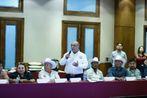 Argüello Campos, coordinador general de Agricultura de la Secretaría de Agricultura y Desarrollo Rural (SADER), el gobernador reiteró que es el principal interesado en concretar el subsidio ofrecido a los productores, el cual no se ha liberado debido al proceso de transición del Gobierno Federal, concretamente por parte de las autoridades hacendarias.