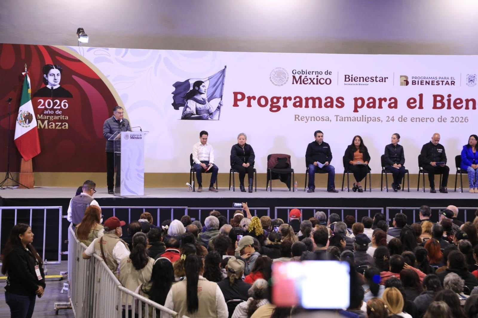 Reynosa, Tamaulipas.- La presidenta de México, Claudia Sheinbaum Pardo refrendó todo el respaldo del Gobierno Federal a Tamaulipas, al anunciar una amplia serie de apoyos en vivienda, carreteras, salud, obras de infraestructura hidráulica y más de 23,000 millones de pesos en inversión de los programas federales que beneficiarán a 816,000 tamaulipecos y tamaulipecas.