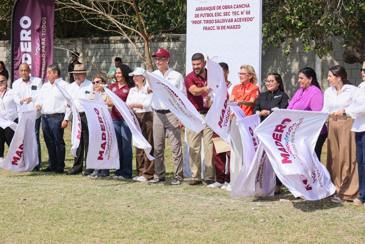 El presidente municipal Erasmo González Robledo, acompañado de la presidenta del Sistema DIF de Ciudad Madero, Dunia Marón Acuña, así como de síndicos, regidores y directores generales, dio el banderazo de arranque a cinco obras que marcan el inicio del programa de obra pública 2026, en las que se aplica una inversión global de 14 millones 914 mil 110.77 pesos, impactando una superficie total de 50 mil 775 metros cuadrados, en beneficio directo de las familias maderenses. Estas acciones contemplan la construcción de una cancha de fútbol con pasto sintético en la Escuela Secundaria Técnica No. 68, así como trabajos de limpieza y desazolve en la laguna Ilusión Norte, beneficiando a colonias como 15 de Mayo, Emiliano Zapata, Ampliación Emiliano Zapata, Revolución Verde, Ampliación Revolución Verde y Adriana González. De igual forma, se pusieron en marcha obras de pavimentación en la calle Américo Villarreal, entre Geranio y Palo de Rosa, en la colonia Adriana González; en la calle Río Casas, entre Río Papaloapan y Río Tecolutla, en la colonia 15 de Mayo; así como en la calle 10, consolidando estas acciones como parte del arranque del programa de obra pública 2026. En el marco de esta primera jornada de trabajo, el presidente municipal destacó que estas acciones forman parte del arranque del Programa de Obra Pública 2026, el cual contempla una inversión estimada de más de 220 millones de pesos y la ejecución de más de 50 obras en distintos puntos de Ciudad Madero, consolidando un esfuerzo sostenido en materia de infraestructura para el municipio. “Cada obra que iniciamos es una respuesta directa a la confianza de la ciudadanía, porque estamos trabajando para que ese esfuerzo se traduzca en beneficios reales para todas y todos”, expresó. Asimismo, estas obras incluyen la rehabilitación de líneas de agua potable, drenaje sanitario, tomas y descargas domiciliarias, así como la construcción de guarniciones, banquetas y rampas para personas con discapacidad, fortaleciendo la infraestructura urbana y los servicios básicos en distintos sectores del municipio. El presidente municipal reiteró que el programa de obra pública 2026 continuará desarrollándose en todos los sectores del municipio, priorizando acciones que atiendan las principales necesidades de la población y contribuyan a un crecimiento ordenado, mediante obras de calidad que fortalezcan la infraestructura urbana y mejoren las condiciones de vida de las familias maderenses.