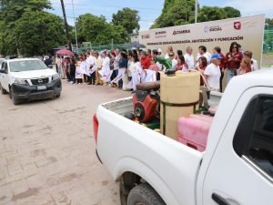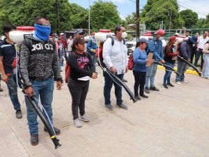 Altamira, Tamaulipas.-Con el firme compromiso de mejorar la salud pública en Altamira, el presidente municipal de esta ciudad y puerto, el Dr. Armando Martínez Manríquez, encabezó el arranque de la jornada de abatización, fumigación y descacharrización en la zona Miramar, al sur del municipio. Este esfuerzo se suma a las acciones preventivas que buscan reducir la incidencia de enfermedades transmitidas por vectores, como el dengue, zyka, entre otras.En el evento, la señora Carmen González brindó una cálida bienvenida a las autoridades presentes, destacando la importancia de esta campaña preventiva para los vecinos de la zona Miramar.En tanto, el Dr. Carlos Arturo Juárez del Ángel, jefe de la Jurisdicción Sanitaria Número Doce en Altamira, tuvo a su cargo la explicación detallada de mencionado programa. Durante su intervención, agradeció al jefe de la Comuna altamirense por la invitación a esta jornada de salud, destacando el lema su administración, “Altamira somos todos”, que refleja la unidad y el compromiso de la ciudadanía por las causas comunes; en este caso en la lucha contra el dengue.Por su parte, correspondió al señor José Armando Navarro, vecino de la colonia, expresar su agradecimiento al alcalde por estas iniciativas, y llamó a los colonos a colaborar en estas campañas para mejorar las condiciones de salud de la comunidad.En el acto, Rommel Martínez Flores, director de Bienestar Social del Ayuntamiento, expuso los motivos de esta jornada, detallando que todo el sector Miramar será fumigado casa por casa. Asimismo señaló que desde el inicio del gobierno del Dr. Armando Martínez, se han implementado brigadas similares.“En esta ocasión, 30 personas estarán a cargo de la abatización, mientras que 20 más utilizarán moto mochilas para fumigar cada hogar. Además, se dispondrá de maquinaria pesada y camionetas para retirar cacharros de la vía pública”, amplió el funcionario.El presidente municipal destacó en su mensaje que esta jornada es parte de las actividades programadas para la Segunda Semana Nacional contra el Dengue, que iniciará el próximo lunes 19 de agosto también en la zona Miramar.»Si no hay salud, no tenemos nada. Cuando no hay salud, no podemos crecer y desarrollarnos, por eso es que al tema de la salud siempre le hemos dado una especial importancia», afirmó el alcalde.Cabe destacar que la jornada en cuestión cubrirá 35 colonias del sector Miramar, una zona rodeada de cuerpos de agua que actúan como criaderos de mosquitos. La campaña se extenderá durante esta semana y la próxima, buscando fortalecer los sistemas de salud y mantener a Altamira muy por debajo de la media nacional en casos reportados de dengue.El evento concluyó con el banderazo de arranque de estos trabajos de fumigación, en el que participaron síndicos, regidores, directores y demás funcionarios.