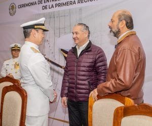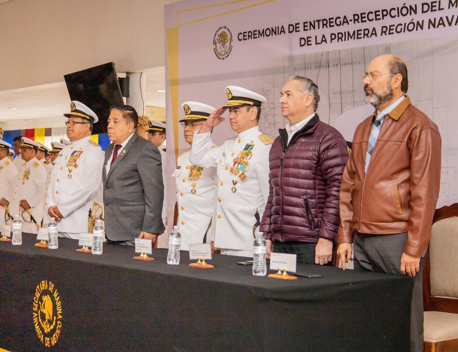 El alcalde Adrián Oseguera Kernion asistió la mañana de este martes a la ceremonia de entrega de recepción del mando de armas de la Primera Región Naval, en la que rindió protesta el Vicealmirante Carlos Eduardo L´Eglise Escamilla como nuevo comandante de esta Región Naval, en sustitución del Vicealmirante Gabriel Pablo González Contreras.