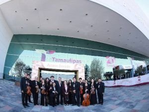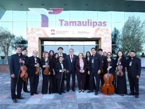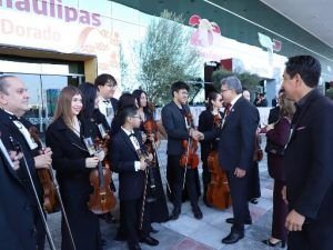 Altamira, Tamaulipas.-El Dr. Armando Martínez Manríquez, presidente municipal de Altamira, asistió al Segundo Informe de Gobierno del Gobernador Constitucional de Tamaulipas, Dr. Américo Villarreal Anaya, acto que reunió a cientos de ciudadanos que se dieron cita para ser testigos del avance en la transformación del Estado a dos años del triunfo del titular del Ejecutivo Estatal. Acompañado de su esposa, la C.P. Rossy Luque de Martínez, presidenta del Sistema DIF local, Martínez Manríquez se apersonó en el Polyforum de Ciudad Victoria para respaldar al Dr. Villarreal Anaya.En dicho recinto, el municipio de Altamira contó con una representación especial, ya que la Orquesta de Cámara del Ayuntamiento colaboró amenizando el evento, lo anterior gracias a una cordial invitación por parte del Instituto Tamaulipeco para la Cultura y las Artes (ITCA).El munícipe altamirense destacó el apoyo que el Gobernador ha brindado a la urbe industrial en materia de cuidado y saneamiento del agua. Asimismo, hizo mención del respaldo de Villarreal Anaya en la construcción de una planta de tratamiento de aguas residuales en Villa Cuauhtémoc, así como en el dragado del sistema lagunario Champayán.«En el marco de un gobierno humanista encabezado por el Dr. Américo Villarreal Anaya, ratificamos nuestro respaldo y respeto», expresó el edil, subrayando la importancia de la colaboración entre los distintos niveles de gobierno para el beneficio de las familias.