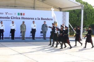 Ciudad Victoria, Tamaulipas. – Tamaulipas avanza en la seguridad y esto es producto de un esfuerzo conjunto que se realiza de forma coordinada y colaborativa, afirmó el gobernador Américo Villarreal Anaya, al reiterar su reconocimiento a la contribución del Ejército Mexicano. Al presidir la ceremonia de honores, este lunes, en el 77 Batallón de Infantería, el gobernador agradeció al general Enrique