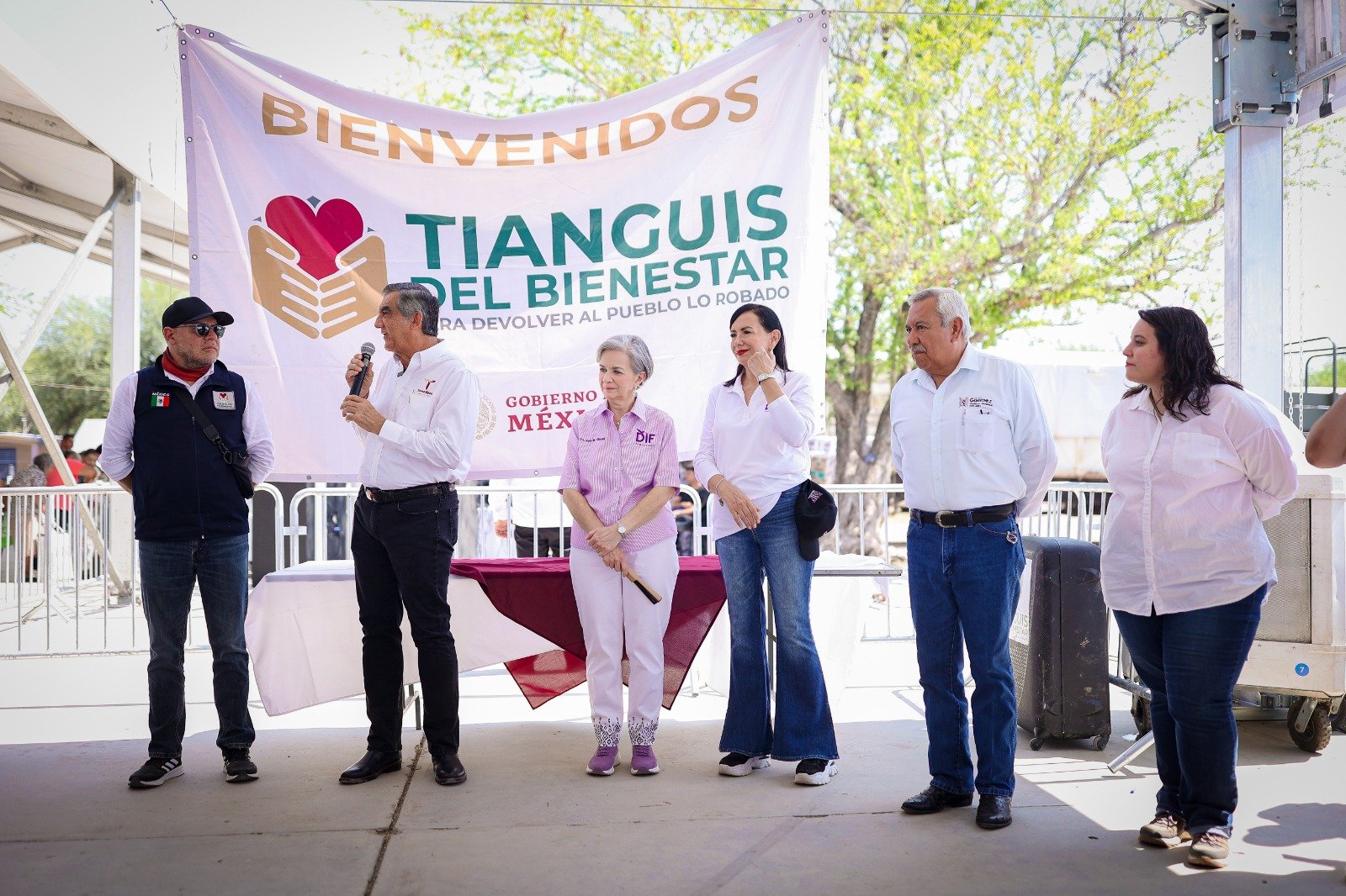 Por otra parte, la presidenta del DIF Tamaulipas agradeció al presidente de la República por los apoyos enviados para esta actividad y reiteró: “Sabemos que el presidente de México siempre está muy atento a la población de Tamaulipas, que nos quiere mucho y es correspondido, siempre estamos con él y para atender a toda la población”.En su oportunidad, el coordinador de Acción de los Tianguis del Bienestar declaró que la presencia de las dependencias del gobierno federal es para hacer realidad una instrucción presidencial que es hacer llegar los bienes que estaban decomisados para darles un mejor destino, que es el pueblo que lo necesita y en esta ocasión llegarán en próximas fechas a 17 municipios del estado.