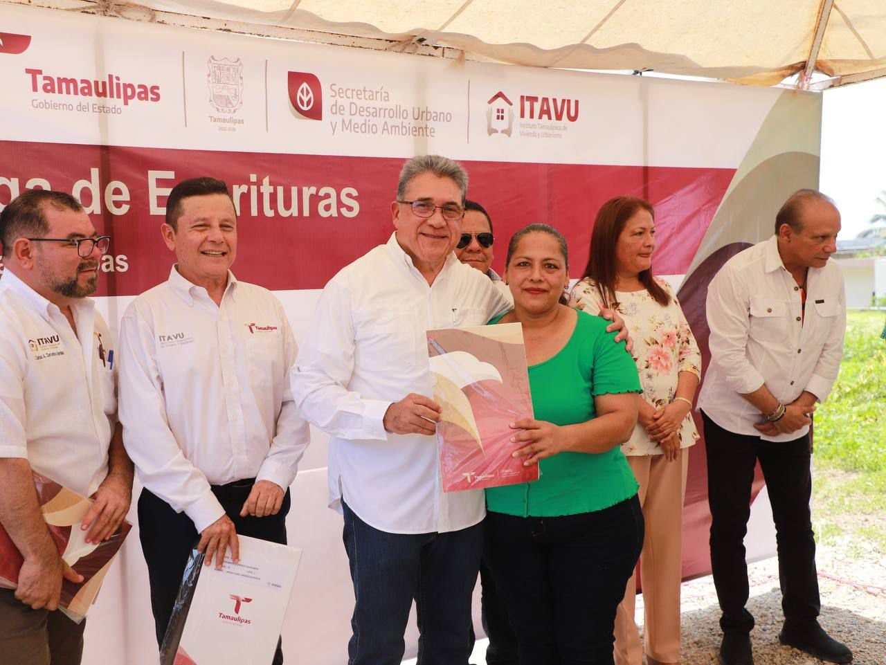 Altamira, Tamaulipas.-En un significativo evento, el presidente municipal de Altamira, Dr. Armando Martínez Manríquez, encabezó la entrega de 43 escrituras patrimoniales en la colonia Juan Genaro de la Portilla. Esta acción, realizada en conjunto con el Instituto Tamaulipeco de Vivienda y Urbanismo (ITAVU), representó un anhelo cumplido por parte de los beneficiarios. El evento contó con la presencia del director general de ITAVU, Germán Fernández Guzmán, y del delegado del ITAVU, Carlos Armando Cervantes Morales, quienes acompañaron al alcalde en este importante acto. Durante su intervención, el jefe de la Comuna altamirense expresó su profunda gratitud hacia el Gobernador de Tamaulipas, Dr. Américo Villarreal Anaya, por su extraordinario apoyo en la escrituración de áreas verdes del Ayuntamiento, subrayando la importancia de estas acciones para el desarrollo urbano del municipio. «Hoy, con la entrega de estas 43 escrituras, no solo estamos proporcionando seguridad jurídica a las familias, sino que también estamos fortaleciendo el tejido social y comunitario de Altamira. Estas escrituras son el fruto del esfuerzo de muchas personas e instituciones que comparten el objetivo de construir un futuro mejor para todos,» destacó el alcalde. Martínez Manríquez también resaltó el compromiso de su administración para regularizar los miles de predios que aún faltan por escriturar en el municipio. «Nuestro trabajo no termina aquí. Seguiremos trabajando arduamente para que cada familia altamirense tenga la certeza y la seguridad que merecen. La regularización de predios es una prioridad, y estamos decididos a avanzar con determinación en este objetivo,» añadió. Por su parte, el director general del ITAVU, Germán Fernández Guzmán, elogió el esfuerzo coordinado entre el gobierno estatal y municipal, destacando que este tipo de acciones son fundamentales para el desarrollo ordenado y sostenible de la zona. «La escrituración de terrenos no solo brinda seguridad jurídica, sino que también es un paso esencial para el desarrollo integral de nuestras ciudades. Agradezco al alcalde Martínez Manríquez y a todo su equipo por su compromiso y dedicación,» afirmó. Concluyó el evento con la entrega de dichas escrituraciones a cada uno de los 43 beneficiarios por parte de las autoridades estatales y municipales, en el marco de un ambiente de alegría y entusiasmo por este sueño hecho realidad para las familias.