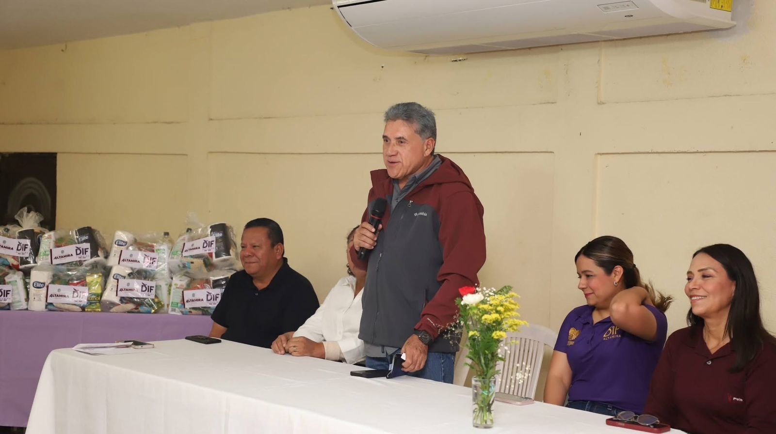 En colaboración con el organismo que encabeza, la C.P. Rossy Luque de Martínez, el alcalde Dr. Armando Martínez Manríquez realizó la entrega de 70 despensas a integrantes del Sindicato de Trabajadores de la Industria Empacadora, Enlatadora y Maquiladora, Similares y Conexos de Altamira, en las instalaciones del SITRACE.
