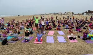 Desde las primeras horas de la mañana, los asistentes se congregaron en la playa para participar en esta actividad, diseñada para fortalecer el cuerpo, calmar la mente y fomentar la paz interior. La práctica estuvo guiada por las instructoras Pamela Ayala y Sandra Barrios, quienes compartieron ejercicios y técnicas de respiración para mejorar la salud física y emocional de los participantes.