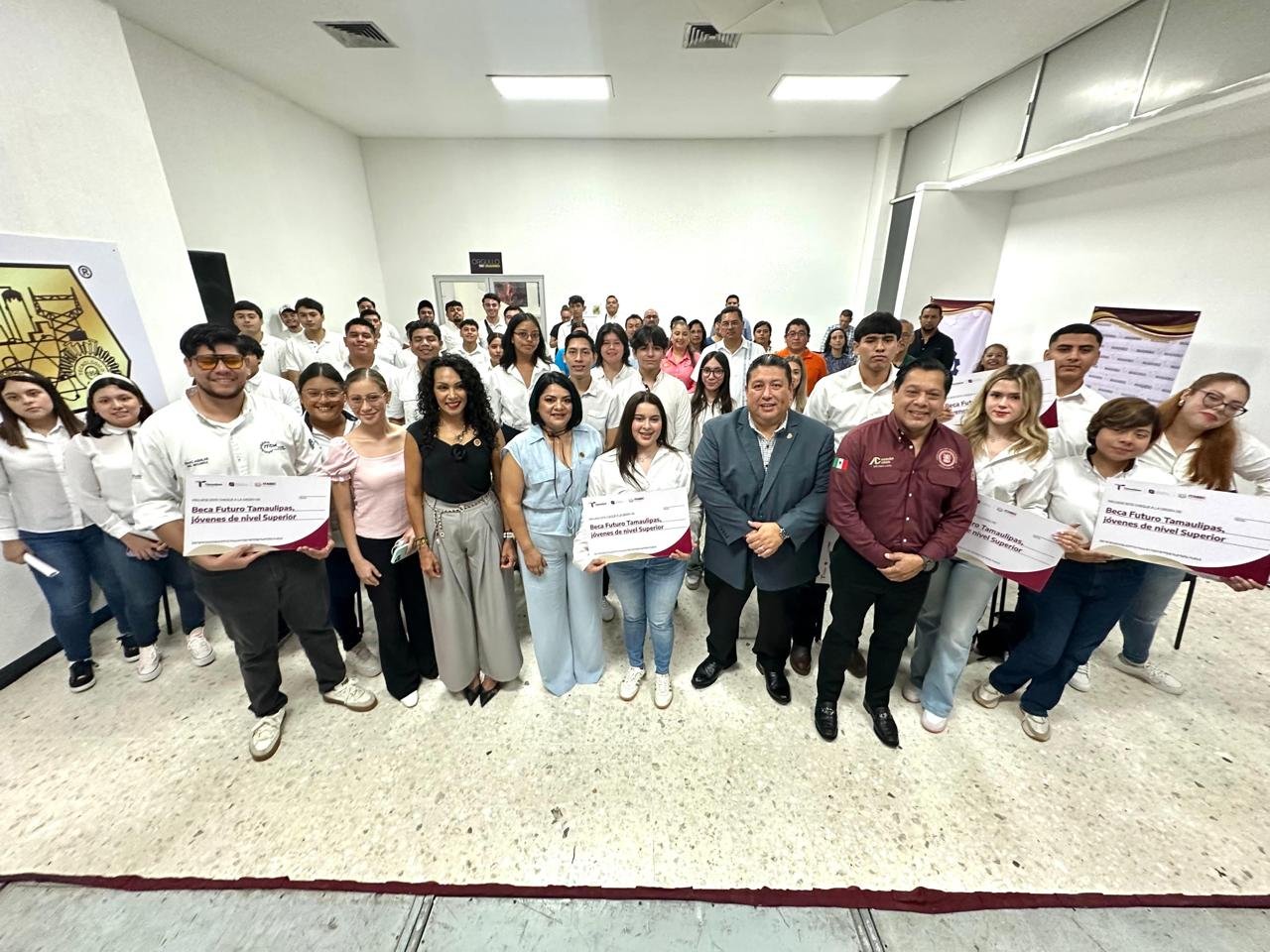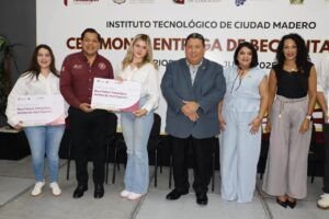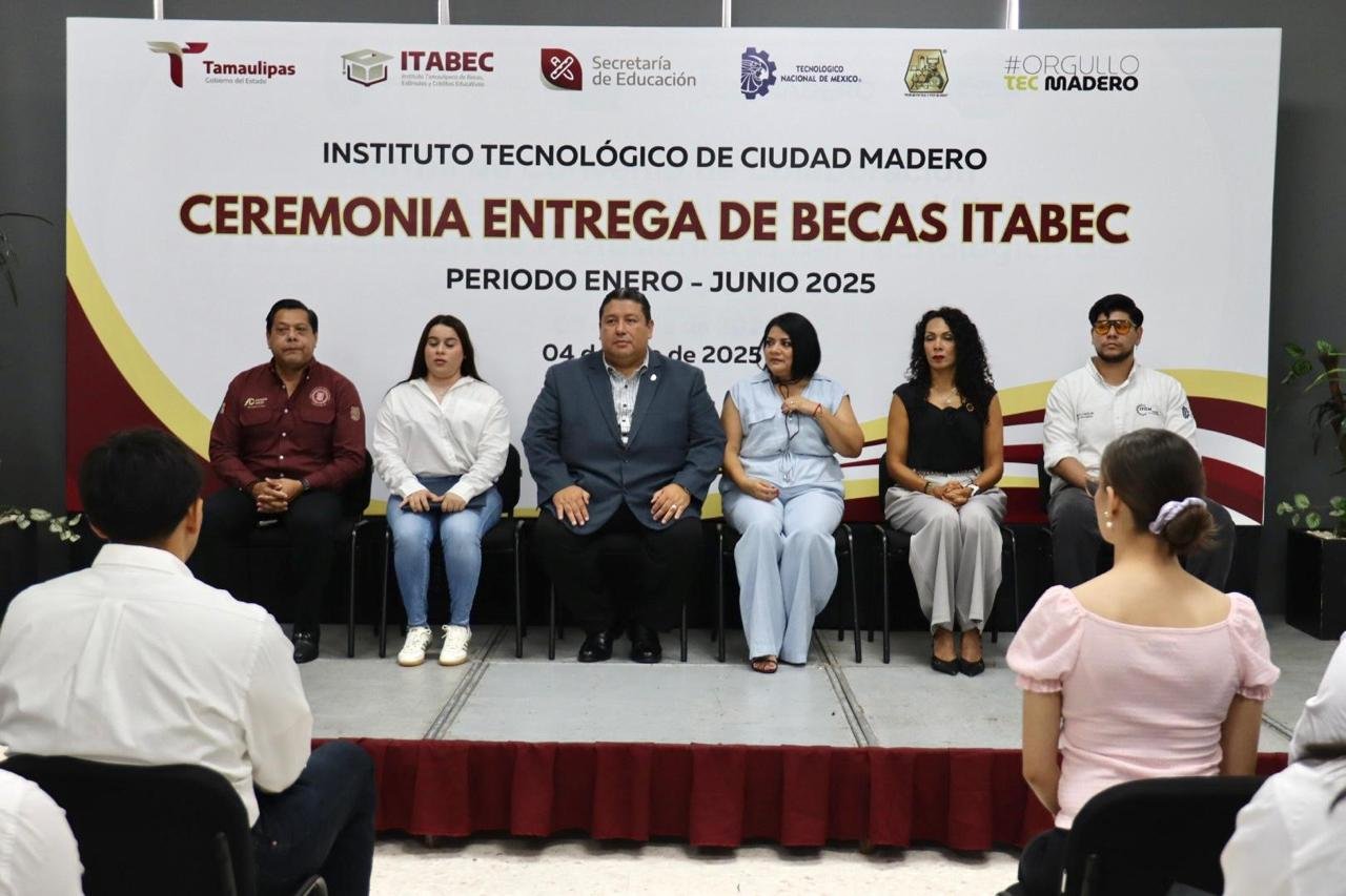 Ciudad Madero.- Contando con el total respaldo del Dr. Américo Villarreal Anaya, gobernador de Tamaulipas en beneficio de la comunidad estudiantil del Tecnológico de Madero, el Mtro. Juan Dionisio Cruz Guerrero, director de la institución encabezó la mañana de este viernes la ceremonia de entrega de becas ITABEC correspondiente al periodo enero-junio 2025. Acompañado por los diputados locales Úrsula Patricia Salazar Mojica, Cynthia Lizabeth Jaime Castillo y Francisco Adrián Cruz Martínez, el director del Tec hizo la entrega simbólica de cheques que otorga el Instituto Tamaulipeco de Becas, Estímulos y Créditos Educativos que encabeza el Dr. Juan Guillermo Mansur Arzola. Cabe destacar la cifra récord que se alcanzó durante este período, siendo un total de 1,554 becas las obtenidas para los estudiantes de las diferentes ingenierías con las que cuenta el Tecnológico de Madero, lo que genera un precedente para buscar una cantidad mayor en la próxima convocatoria. “Pido el apoyo de mis amigos diputados para que nos ayuden a superar la cifra de las 1,554 becas que hoy estaremos entregando, vamos por 2 mil en la próxima entrega, así que sigamos haciendo equipo y den nuestro agradecimiento al señor gobernador, al Dr. Américo Villarreal Anaya por el respaldo a la educación y a los estudiantes del Tec Madero”, dijo durante su discurso el Mtro. Juan Dionisio Cruz Guerrero a los diputados locales que le acompañaron en la ceremonia. Posteriormente, se realizó la entrega simbólica de los cheques a un grupo representativo de estudiantes de las diferentes carreras, para después con el apoyo del personal de servicios escolares entregar este estímulo educativo a la totalidad de los alumnos considerados para recibir sus cheques como parte de las becas que otorga el ITABEC.