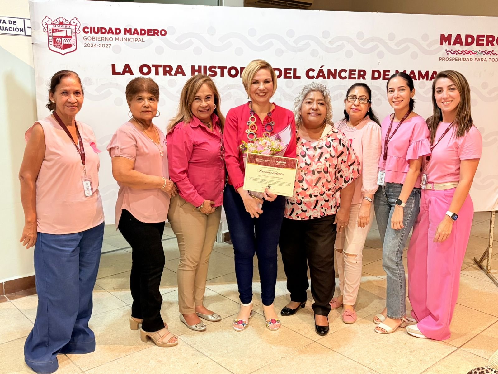 Al evento asistieron mujeres líderes de distintos sectores sociales y representantes de instituciones locales, entre ellas, la Dra. Diana Tejeda Martínez, Secretaria Técnica Regional de la Mesa de Seguridad; Lic. María de Lourdes Meléndez López, Oficial Segunda del Registro Civil; Lic. Ryghel Claudia Ham Lara, representante del STRM Sec. 18; Lic. María Elena Ortuño Guerrero, empresaria; Lic. Martha Magdalena Rodríguez Gutiérrez, Coordinadora General del Grupo GEMAS, representada por la Mtra. Magdalena Hernández García; y la Mtra. María Teresa Salinas López, fundadora de la asociación “Guerreras con Turbante”. Con estas acciones, el Gobierno de Ciudad Madero continúa promoviendo programas de salud con enfoque humano y perspectiva de género, reforzando la cultura de auto exploración y prevención.