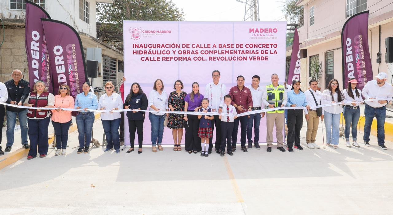 Ciudad Madero trabaja junto al gobernador Dr. Américo Villarreal Anaya para seguir avanzando al doble en la transformación en infraestructura vial, destacó el presidente municipal, Erasmo González Robledo, al encabezar la inauguración de la pavimentación de la calle Reforma en la colonia Revolución Verde, una obra con una inversión de casi 6 millones de pesos con una longitud de mas de 300 metros lineales, que fortalece la movilidad urbana y responde a una petición histórica de las familias de este sector.
