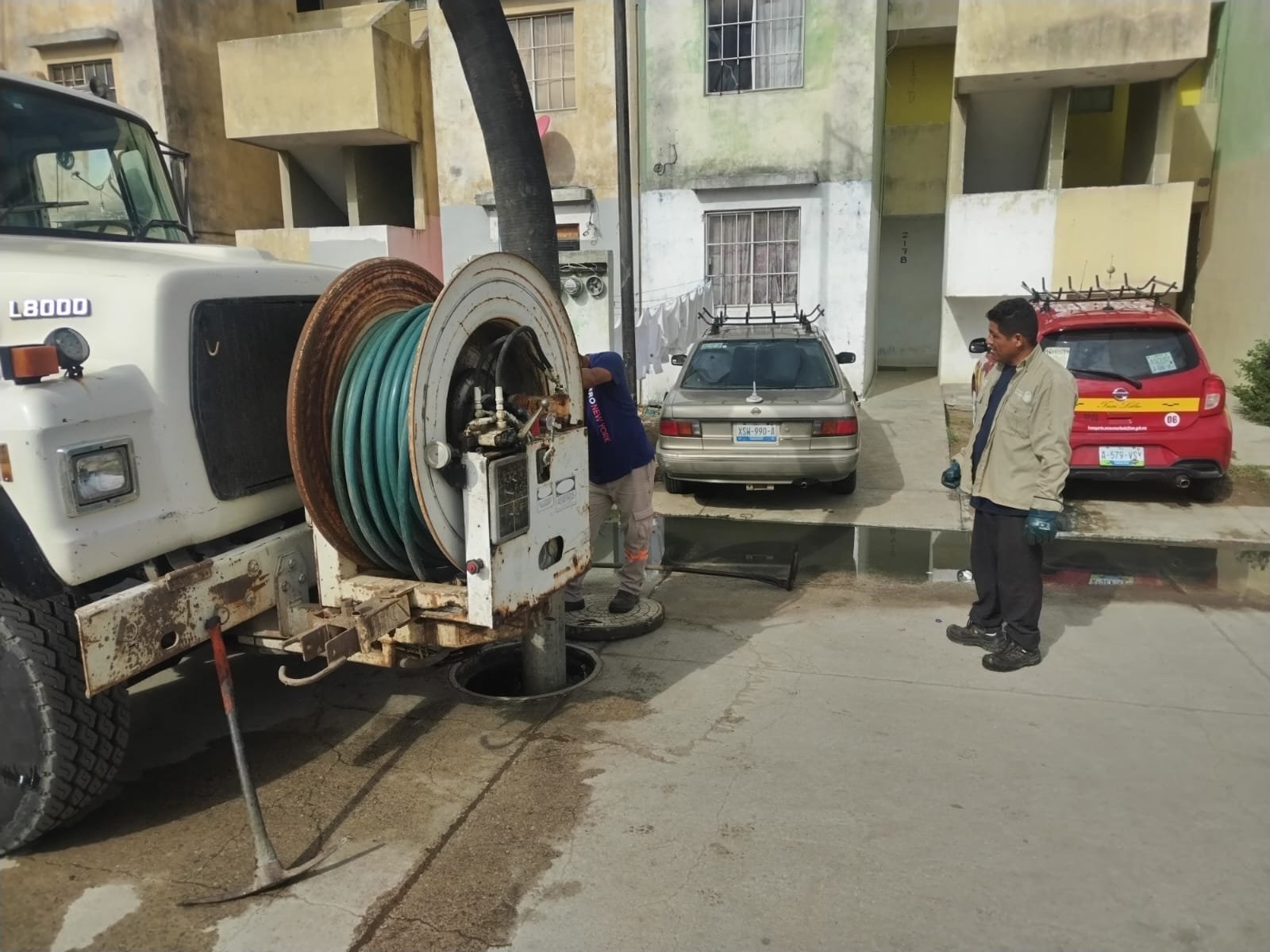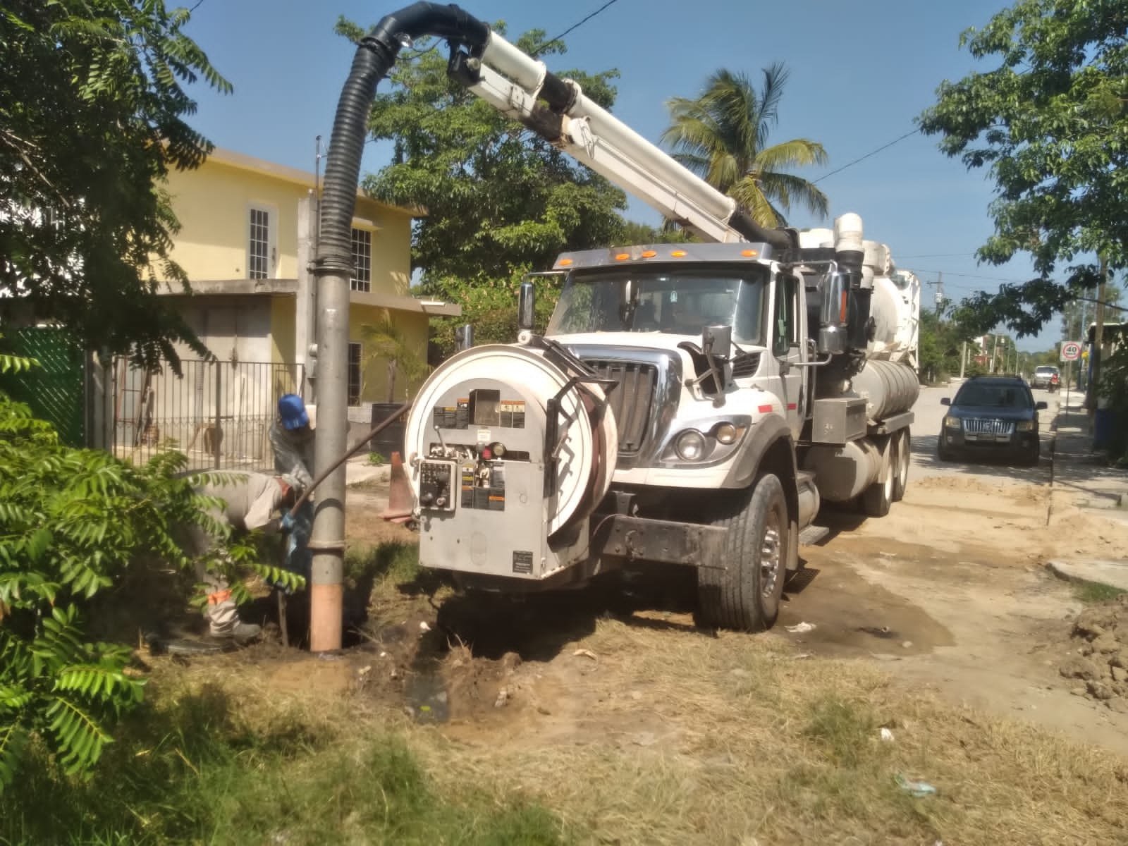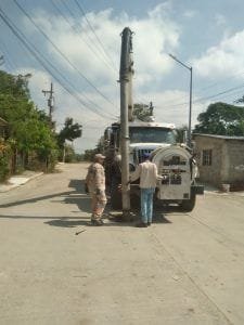 Utilizando un camión tipo vactor, en las calles Océano Pacífico y México de la colonia Las Brisas, personal del organismo operador del agua realizó acciones de mantenimiento en la red hidrosanitaria, desarrollando labores similares también en arterias viales del Fraccionamiento Los Mangos. Mientras que en el ejido La Pedrera, en la calle 6 de abril, cuadrillas de trabajadores efectuaron labores de desazolve de drenaje con su respectivo mantenimiento, requiriéndose también del apoyo de una unidad de succión para la limpieza de las tuberías.