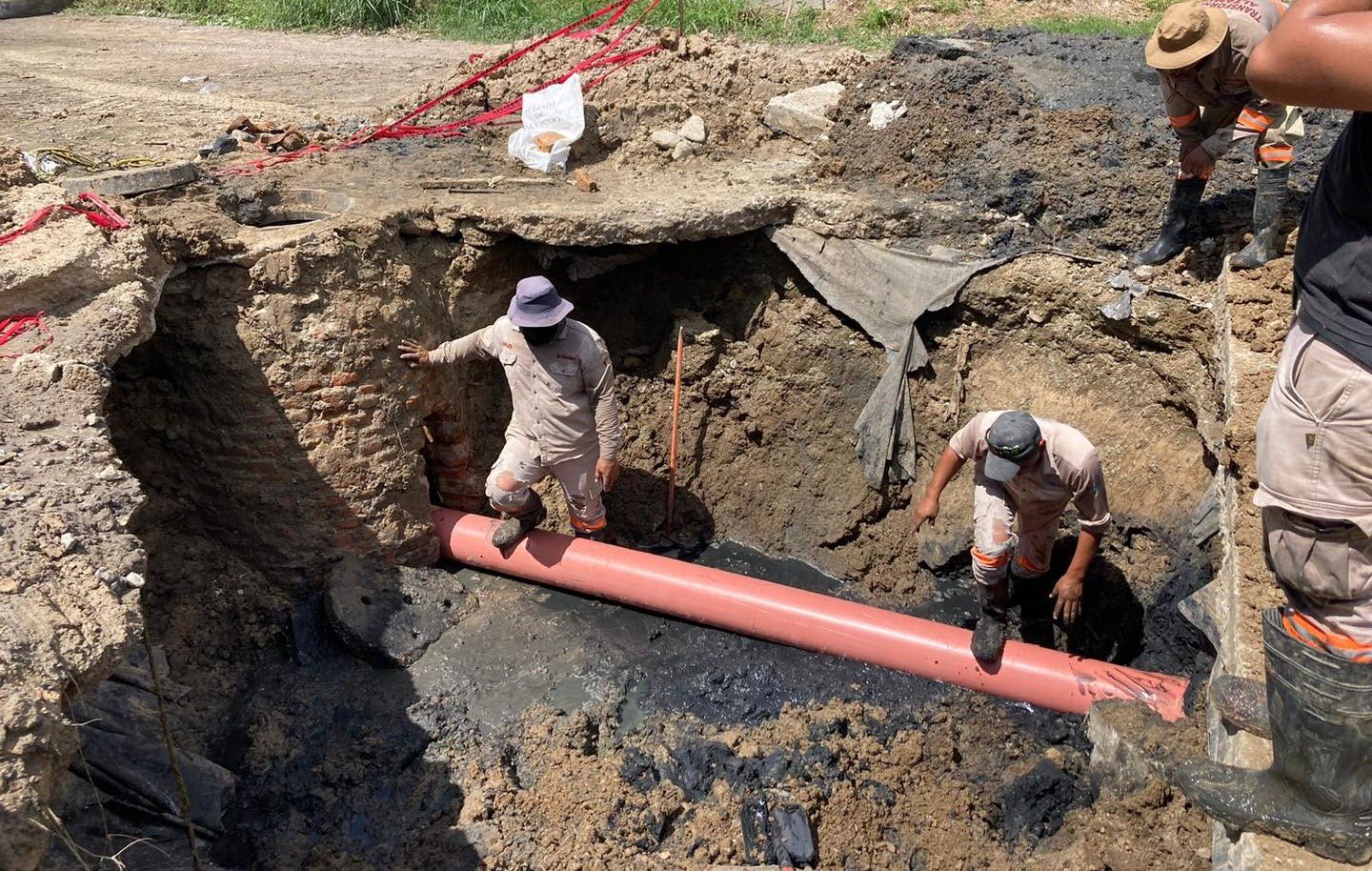 Asimismo, los trabajos de reposición de línea general de drenaje en la calle Barra de Trinidad de la colonia INFONAVIT Fidel Velázquez se desarrollan conforme a lo establecido, por lo que está por concluir la instalación de tubería de 60 pulgadas que optimizará el funcionamiento del sistema de desagüe.