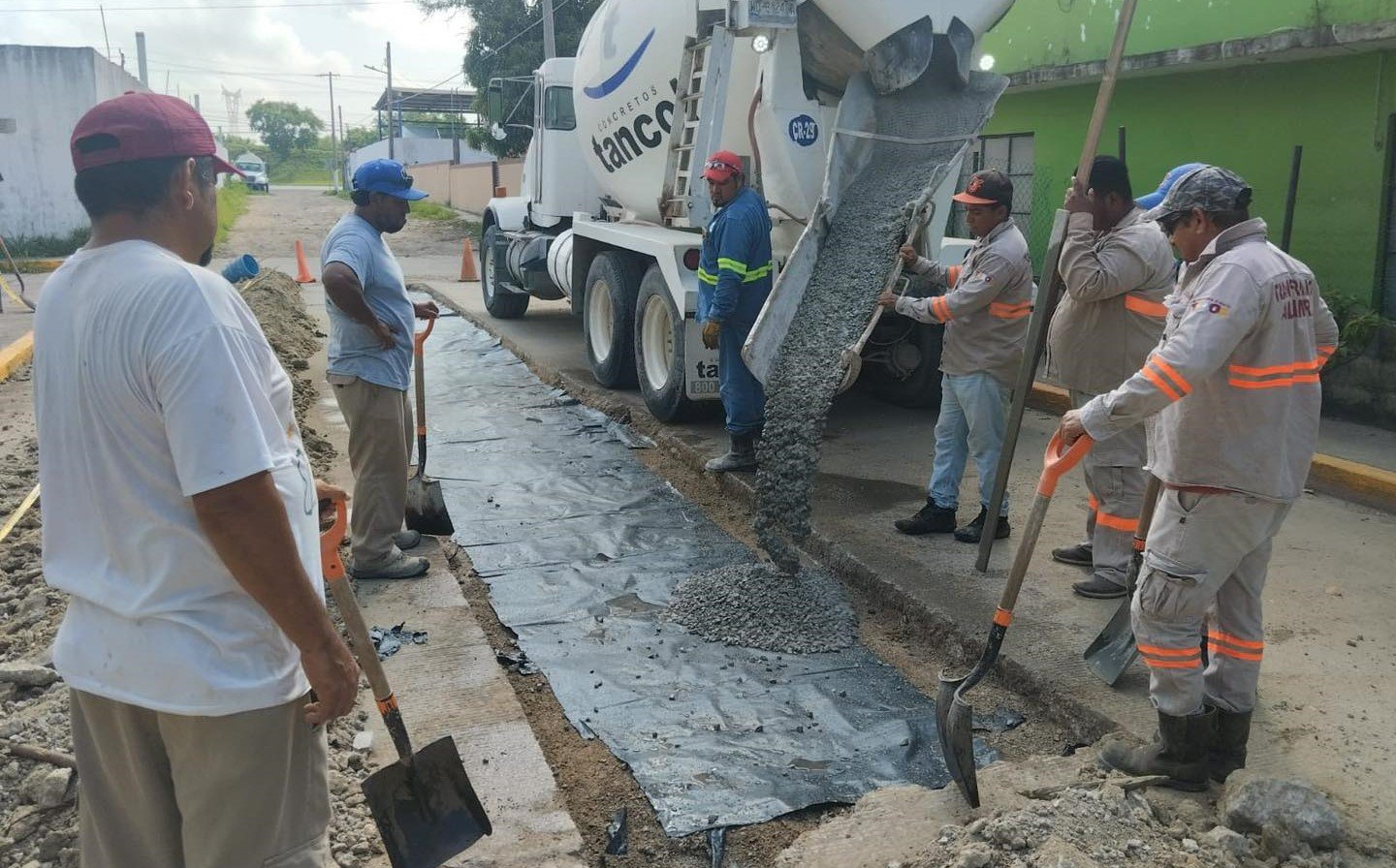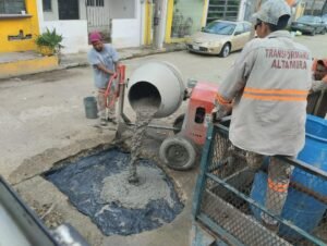 Tras efectuar trabajos de reparación y mantenimiento en líneas de drenaje, así como el arreglo de fugas de agua, y la instalación de servicios, la Comisión Municipal de Agua Potable y Alcantarillado de Altamira, que dirige el Ing. Omar Hernández Leines, llevó a cabo la reposición de pavimento de concreto en las áreas intervenidas.