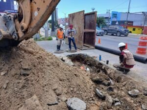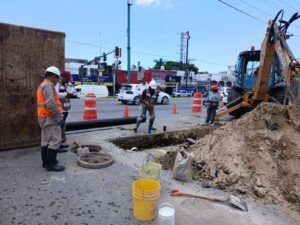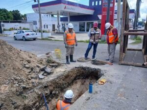 Actualmente, se realizan trabajos correctivos en la carretera Tampico-Mante, esquina con Francisco I. Madero, en la colonia Francisco Javier Mina de Tampico, donde se presentó un hundimiento como consecuencia del colapso de la red general de drenaje. Para resolver este percance, personal técnico de COMAPA SUR llevará a cabo la sustitución de aproximadamente 18 metros lineales de tubería, que será reemplazada por un material de alta durabilidad, garantizando así un funcionamiento óptimo del sistema.