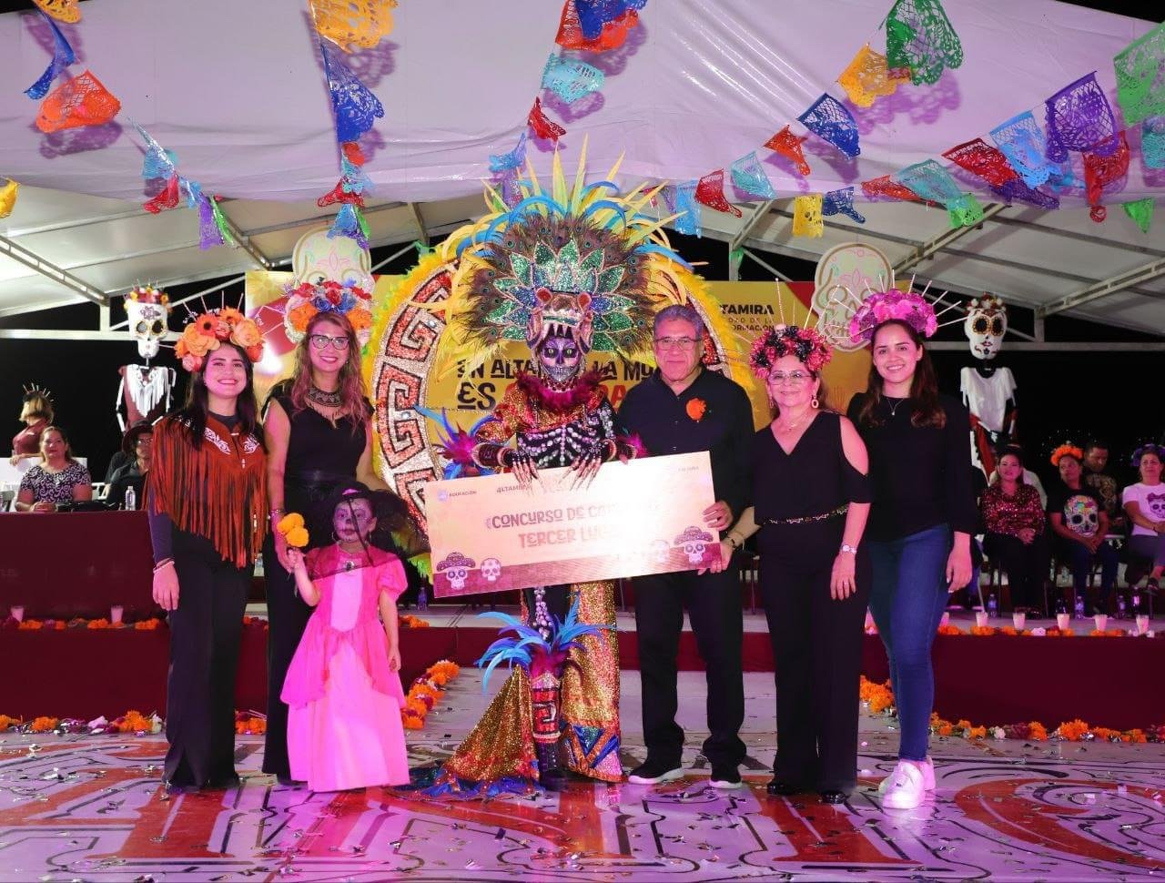 En este gran cierre de las festividades por el Día de Muertos en Altamira, el alcalde estuvo acompañado por la presidenta del Sistema DIF municipal, la C.P. Rossy Luque de Martínez; la presidenta del Voluntariado Juvenil Altamira, Lic. Rosa Elena Martínez Luque, así como por síndicos, regidores y titulares de las diferentes dependencias municipales.