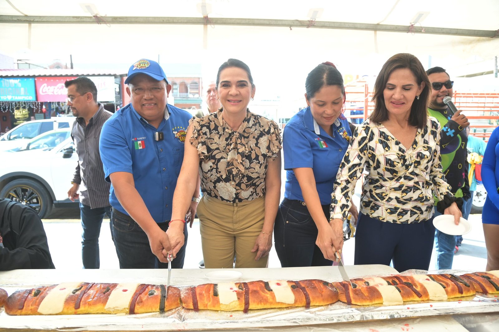 El acto, en el que se unió la voluntad y el entusiasmo del comercio local con la sociedad civil, tuvo como propósito fortalecer la integración social y las tradiciones populares.La alcaldesa porteña agradeció y reconoció la participación de los empresarios por sumarse a la noble causa de compartir la Mega Rosca de Reyes con la niñez tampiqueña en una de las tradiciones de mayor arraigo cultural.»Nos da mucho gusto participar y dar testimonio de esta iniciativa y esfuerzo conjunto que tiene el objetivo de compartir y unir a las familias en el marco de una celebración que nos identifica como una sociedad con valores y esperanza; valoro y agradezco la contribución de nuestros amigos comerciantes por hacer de esta tradición un motivo para dar y compartir».