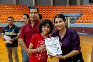 Ciudad Victoria, Tamaulipas.-Con la participación de más de 400 niñas y niños, se llevó a cabo la ceremonia de clausura del “Campamento de Verano y Visorias INDE 2025” en la Unidad Deportiva Siglo XXI.