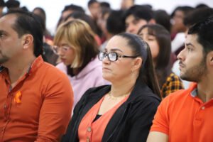 Posterior a la conferencia, la comunidad universitaria se trasladó a la cancha de fútbol para realizar un emotivo moño humano con globos y cartulinas en conmemoración del Día Naranja, en apoyo a esta importante causa. Dicha actividad tuvo el propósito de reforzar el mensaje de unidad y solidaridad en la lucha contra la violencia hacia las mujeres y niñas.