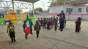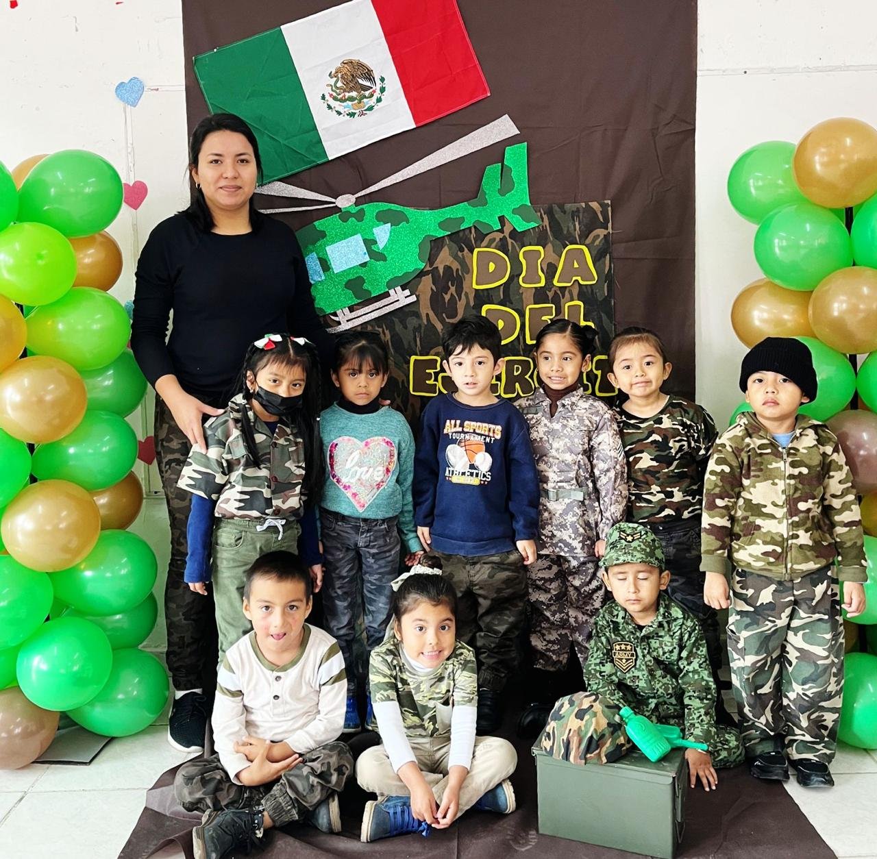 Al reconocer la importante labor que realiza el Ejército Mexicano día con día, las niñas y niños de los Centros de Asistencia Infantil Comunitarios, rindieron un homenaje; ante ello, la coordinadora de los CAIC’s, Silvia Teresa George González, señaló que en la educación es esencial fomentar y desarrollar actividades para conmemorar las fechas relevantes de México.