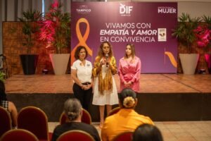 En su mensaje Mónica Villarreal agradeció a la Presidenta del Sistema DIF Tampico, Luz Adriana Villarreal y a la Directora del Instituto municipal de la Mujer, Amalia Gabriela Ávalos, por sumar esfuerzos y acercar a las mujeres información esencial que ayuda a construir una sociedad libre de violencia.