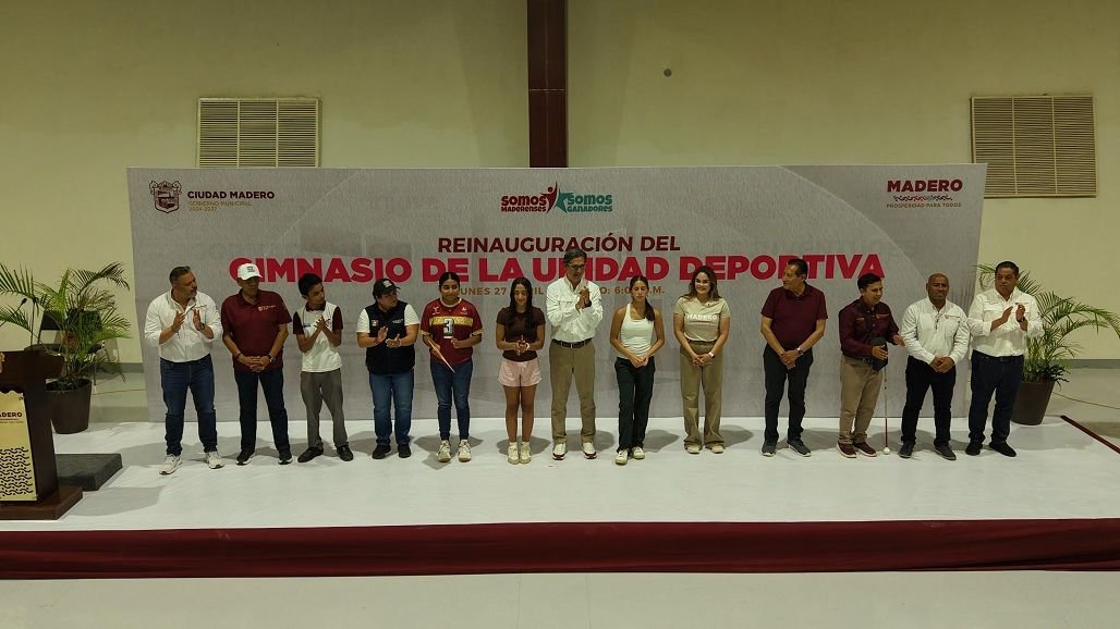 Como parte de una política pública orientada al bienestar social y al fortalecimiento del deporte, el presidente municipal Erasmo González Robledo acompañado de sus hijas Ana Victoria y María Elisa encabezó la inauguración de la rehabilitación y mantenimiento integral de la Unidad Deportiva, consolidando espacios dignos y funcionales para las familias maderenses. Durante su mensaje, el presidente municipal Erasmo González Robledo destacó que este evento es para las y los deportistas de Ciudad Madero, a quienes agradeció por la oportunidad de brindarles nuevamente este espacio donde recalcó “todos estos logros son gracias al apoyo decidido del Gobernador amigo Américo Villarreal Anaya y hoy este espacio se va a llenar de gloria, se va a llenar de esperanza y se va a llenar de alegría”. En el evento se contó con la presencia de los integrantes de Cabildo, así como el presidente de la Comisión de Deportes Profesor Heberto Raga Navarro, el Comisionado Responsable de la DGETI en Tamaulipas; Ing. Olegarío Muñiz Cura, la Directora de Deportes, Jade Yáñez, funcionarios federales, estatales y municipales además de la participación de estudiantes de distintos niveles educativos y equipos deportivos, quienes dieron vida a esta significativa reapertura. La obra fue ejecutada mediante el Fondo de Aportaciones para el Fortalecimiento de los Municipios (FORTAMUN), con una inversión de $2,759,944.12 pesos, beneficiando directamente a 1,777 maderenses, en una superficie intervenida de 1,236 metros cuadrados. Como parte de la primera etapa, se intervinieron áreas clave del complejo deportivo, entre ellas el gimnasio multidisciplinario, campo de fútbol 7, alberca olímpica, fachada principal, así como gradas, espacios deportivos, garantizando una rehabilitación integral. En el gimnasio multidisciplinario se llevó a cabo la renovación total de la duela con madera de pino natural americano, incorporando sistemas de amortiguación y acabados de alta resistencia, la aplicación de recubrimientos especializados que elevan la calidad y seguridad del espacio además de la rehabilitación total del aire acondicionado. Asimismo, se rehabilitaron sanitarios y vestidores, se instalaron nuevas butacas de alta durabilidad, se aplicaron más de 4,200 metros cuadrados de pintura en interiores y exteriores, y se realizó mantenimiento a la estructura metálica, incluyendo la instalación de nuevos tableros de basquetbol.