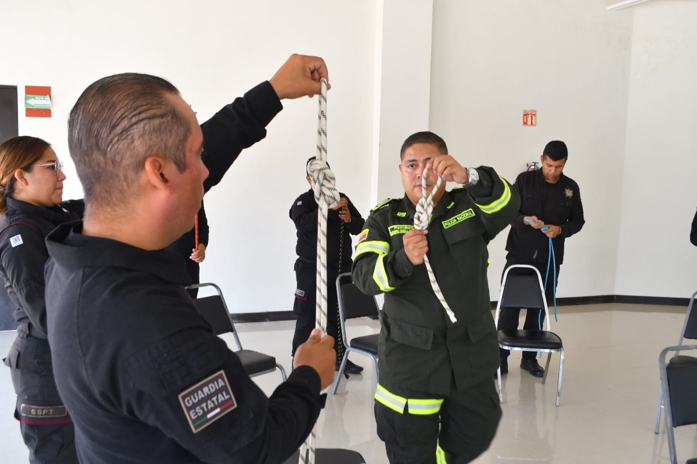 Pese a ser la primera vez que el personal de la Guardia Estatal lleva a cabo esta práctica de nudos, el instructor destacó la participación de las y los integrantes de esta corporación, quienes continúan capacitándose para ofrecer una mejor respuesta a la sociedad ante diversas situaciones.