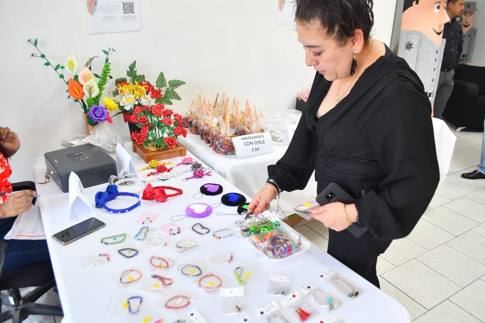 Productos artesanales como flores elaboradas con foami, pulseras, aretes, ornamentos colgantes, llaveros, empanadas, galletas y carlotas, entre otros, fueron exhibidos para su comercialización en la recepción del edificio de la Subsecretaría de Ejecución de Sanciones y Reinserción Social, ubicado en el Complejo Estatal de Seguridad Pública.“Están muy contentas, están satisfechas con los resultados y, aparte, se les está apoyando para que sigan produciendo su trabajo”, manifestó la jefa del Departamento de Promoción y Desarrollo Laboral, Brenda Ivette Torres Castillo, quien agradeció a los colaboradores del área operativa y administrativa por su contribución en esta actividad.Destacó que dicha actividad se realizará el último viernes de cada mes con la finalidad de contribuir a la economía familiar de la población femenina del CEDES Victoria e impulsar su colocación en el mercado laboral una vez cumplido su periodo de estancia en el centro.Agregó que gracias al respaldo otorgado a esta exposición y venta, más mujeres privadas de la libertad han decidido participar y extender así la variedad de productos elaborados por ellas.Cabe mencionar que en los cinco CEDES de Tamaulipas, al menos unas 140 mujeres privadas de la libertad realizan diversas actividades productivas y de autoempleo.