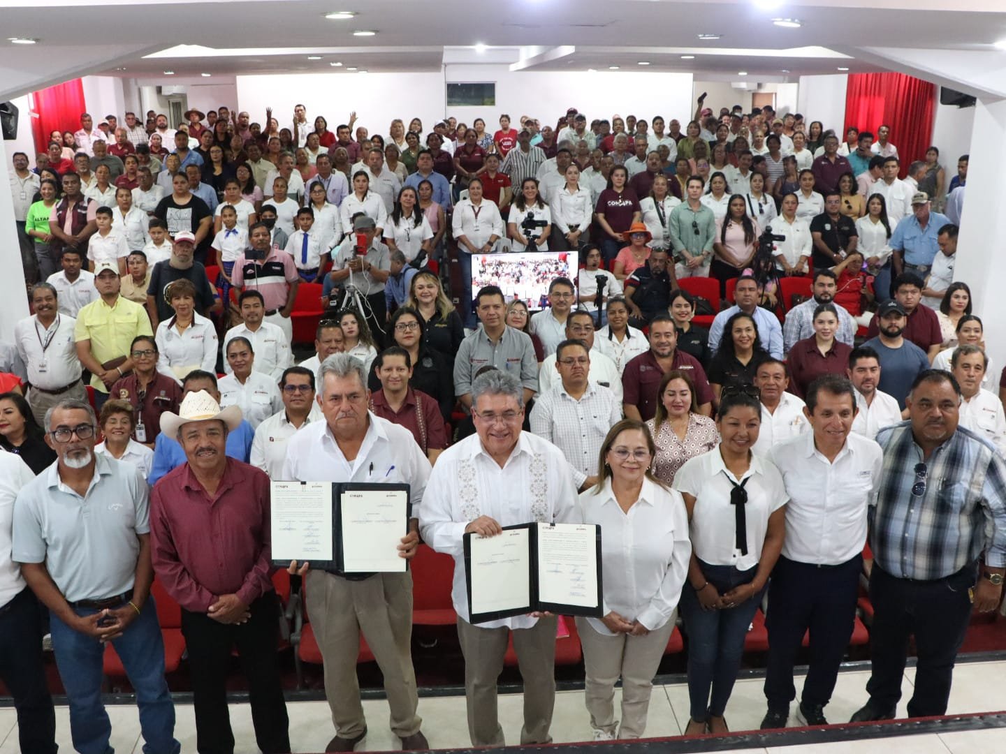 A efecto de establecer las bases que permitan el adecuado tratamiento de las aguas residuales en la zona rural, desde su conducción en diferentes ejidos hasta la PTAR de Villa Cuauhtémoc, así como su posterior reutilización, se llevó a cabo la Firma de Convenio de