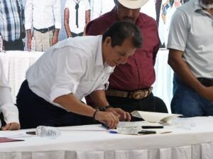 COMAPA Altamira con Comisariados Ejidales, signando el gerente general del organismo, Dr. Gabriel Arcos Espinosa, y representantes ejidales, además del alcalde Dr. Armando Martínez Manríquez y el secretario del Ayuntamiento, Lic. José Francisco Pérez Ramírez, como testigos de honor.