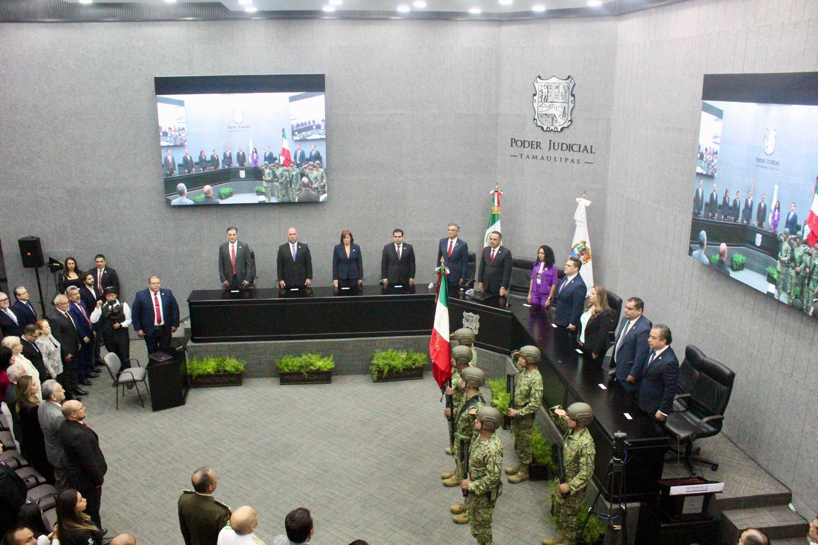 Durante la ceremonia, el gobernador Américo Villarreal Anaya destacó la importancia de la reforma judicial y la autonomía del Poder Judicial, mientras que el magistrado Hernán De la Garza Tamez resaltó el compromiso de la institución con este proceso histórico.