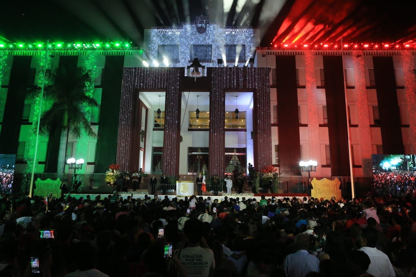 Tras ondear la bandera y repicar la campana, se dio paso a la entonación del Himno Nacional. Posteriormente, inició un espectáculo de pirotecnia que iluminó el cielo de la capital tamaulipeca. Mediante un enlace virtual, el gobernador junto a la presidenta del DIF Tamaulipas, María de Villarreal y las y los asistentes presenciaron el histórico Grito de Independencia de la primera presidenta de México, Claudia Sheinbaum Pardo, desde Palacio Nacional.