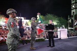 Ciudad Victoria, Tamaulipas. – Miles de familias tamaulipecas se congregaron en la Plaza Juárez de esta capital para conmemorar el 215 aniversario del Grito de Independencia, acto encabezado por el gobernador Américo Villarreal Anaya, quien en su arenga vitoreó a nuestros hermanos y hermanas migrantes, a la honestidad y la justicia, y a los independentistas tamaulipecos.