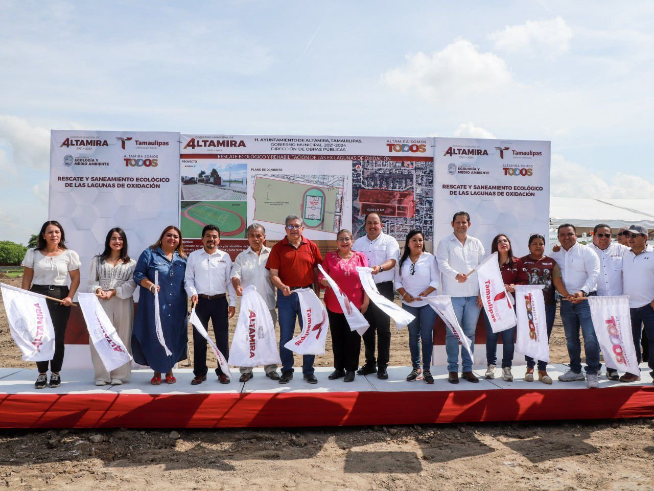 Altamira, Tamaulipas. -Teniendo una visión de futuro orientada a contar con un Altamira saludable y con espacios públicos de primer nivel, el presidente municipal, Dr. Armando Martínez Manríquez, dio inicio al ambicioso proyecto de rescate ecológico y rehabilitación de las ex lagunas de oxidación en la zona centro de la urbe. Durante su intervención, el Dr. Martínez Manríquez destacó la importancia de esta obra para vecinos de colonias aledañas a estas ex lagunas de oxidación, como Laguna Florida, Santa Anita, Revolución Verde, entre muchas otras, señalando que; “este proyecto no solo rehabilitará un espacio que durante años fue una fuente de contaminación, sino que también creará un área ecológica para la práctica del deporte y la sana recreación de las familias altamirenses”. En el marco de este arranque de obra, y con el objetivo de mejorar la infraestructura urbana, se efectuó la formal entrega de un camión vactor a la Comisión Municipal de Agua Potable y Alcantarillado (COMAPA) de Altamira, donado por el Gobierno del Estado, que encabeza el Gobernador, Dr. Américo Villarreal Anaya. Ante ello, el Ing. Omar Hernández Leines, Gerente General de la COMAPA agradeció al Dr. Villarreal Anaya por esta importante donación, a la par que hizo mención del parque vehicular con el que se cuenta en el organismo operador del agua, detallando que en el 2023 se adquirieron diversas unidades, incluyendo una retroexcavadora, dos camionetas pick-up y tres camionetas estacas, entre otras. En 2024, se sumaron tres camionetas más, con una inversión total de 9 millones de pesos en parque vehicular entre 2023 y 2024.En el evento se informó que este ambicioso proyecto de rescate de las ex lagunas de oxidación implica una inversión estimada de 24 millones 630 mil pesos, abarcando un área de 47 mil metros cuadrados. Su transformación, incluirá la construcción de una pista de atletismo profesional de 400 metros lineales con tartán, 40 reflectores y lámparas, un campo de fútbol profesional de 5400 metros cuadrados, gradas techadas, andadores peatonales, estacionamiento y arborización.El Dr. Carlos Arturo Juárez del Ángel, Jefe de la Jurisdicción Sanitaria Número Doce en Altamira, destacó esta importante obra, mencionando que hace más de 50 años, las seis lagunas de oxidación de la ciudad representaban una fuente de contaminación ecológica, visual y biológica. Este proyecto no solo eliminará estos problemas, sino que también promoverá la salud pública.Por su parte, el Biol. Rubén Herver Zárate, titular de Ecología y Medio Ambiente del Ayuntamiento, subrayó la importancia de estas acciones para combatir los efectos del cambio climático e invitó a la ciudadanía y a las autoridades a seguir trabajando de manera conjunta. Por su parte, Ramiro Ramos Serrano, representante de la colonia Fidel Velázquez, agradeció al alcalde por esta magna obra que sin duda promoverá una mejor salud y calidad de vida para los residentes. El alcalde Armando Martínez Manríquez hizo un llamado a los vecinos para cuidar de los espacios públicos evitando tirar basura, asimismo recordó que anteriormente, el olor de las lagunas de oxidación era insoportable, motivo por el cual hoy este proyecto representa un compromiso cumplido en su administración municipal.El evento concluyó con el simbólico banderazo de arranque, en el que participaron el propio alcalde; su esposa, la C.P. Rossy Luque de Martínez, presidenta del Sistema DIF local; el Cabildo y demás autoridades presentes, marcando el inicio de esta importante obra que beneficiará a 43,550 habitantes de Altamira.