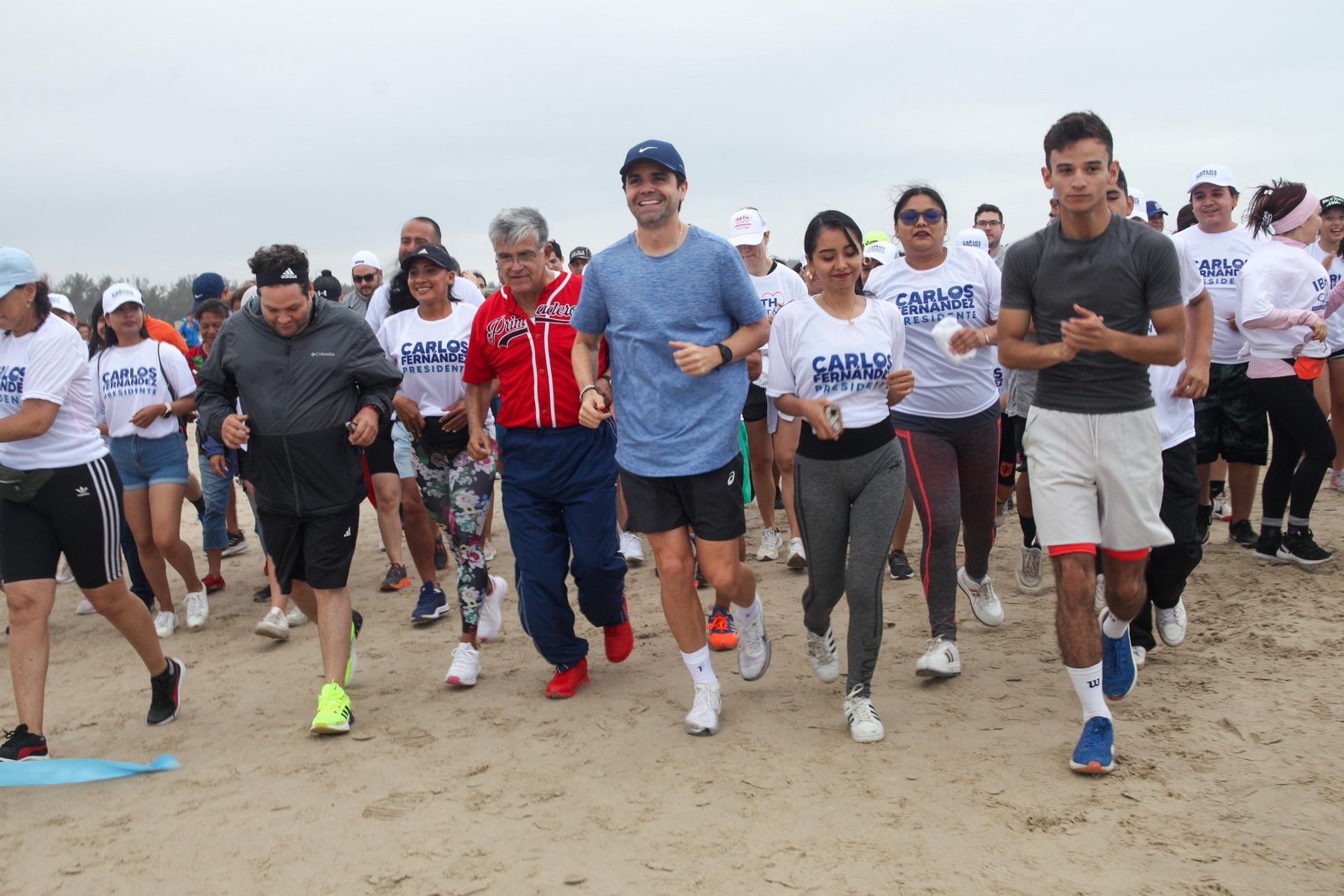Carlos Fernández Altamirano, candidato a la Presidencia Municipal de Ciudad Madero de la alianza “Fuerza y Corazón por Tamaulipas”, encabezó este domingo la primera activación deportiva de su campaña en playa Miramar.