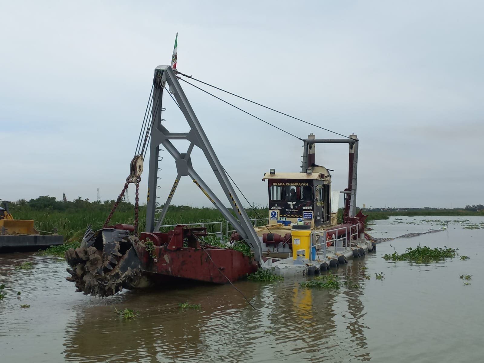 Avanzan labores de desazolve en laguna de Champayán que garantizarán abasto de agua por 50 años; trabajos están por llegar al canal de llamada que comunica al río Tamesí