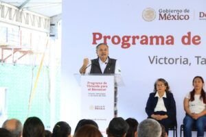 El gobernador Américo Villarreal Anaya agradeció la distinción de realizar la entrega de vivienda desde Tamaulipas y destacó el respaldo de la presidenta Claudia Sheinbaum y su preocupación para impulsar el bienestar y el desarrollo humano. «Compartir este momento es un momento humano, es un momento de vivencia muy valorable en que podemos decir y percibir que nos da mucho gusto que te esté yendo bien, porque es muy seguro que si a ti te va bien, a nosotros también nos va a ir bien y que podamos seguir construyendo esta gran sociedad que nos merecemos los mexicanos y, sobre todo, en esta gran entidad que es nuestro Tamaulipas», mencionó.