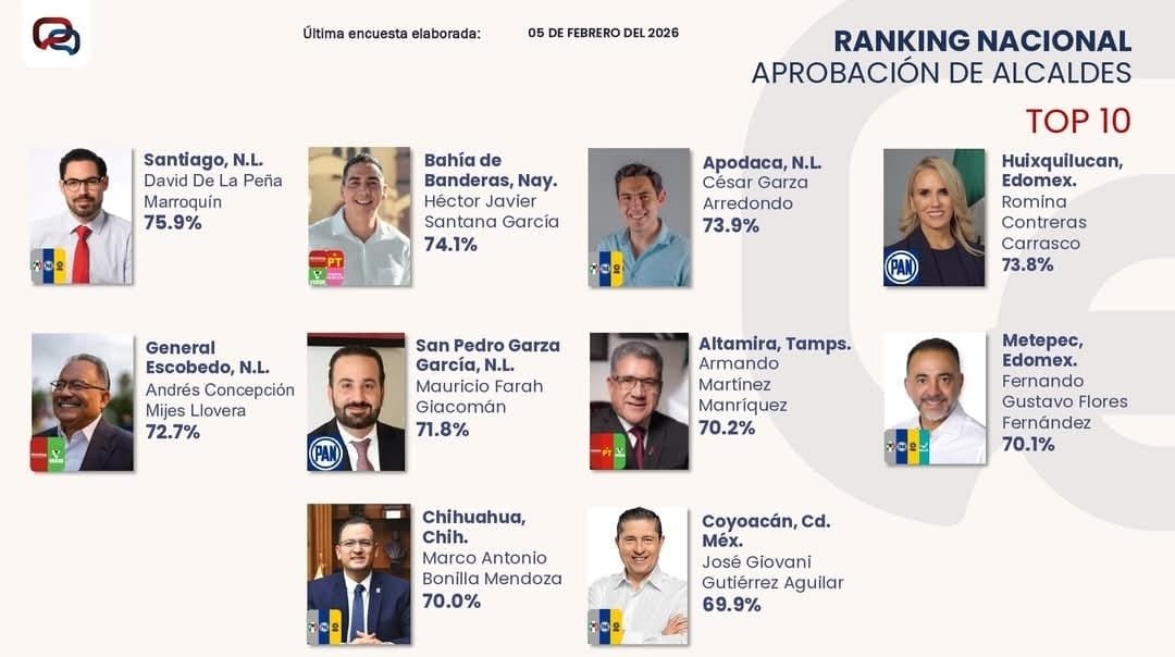 El presidente municipal de Altamira, Dr. Armando Martínez Manríquez, se consolida como uno de los alcaldes con mayor aprobación ciudadana a nivel nacional, de acuerdo con la más reciente medición realizada por la casa encuestadora Massive Caller, correspondiente al 5 de febrero. En dicho ranking nacional, el edil altamirense se posicionó en el séptimo lugar, al registrar un 70.2 por ciento de aprobación, resultado que lo coloca dentro del grupo de los 10 presidentes municipales mejor evaluados de México, además de ocupar el primer lugar en el estado de Tamaulipas. Este reconocimiento refleja el respaldo de la ciudadanía a la administración encabezada por Martínez Manríquez, así como la percepción positiva sobre el rumbo que mantiene el municipio. Factores como una gestión cercana a la población, el fortalecimiento de la infraestructura urbana, el impulso a la economía local y la implementación de programas enfocados al bienestar social han sido clave en esta evaluación. El alcalde Armando Martínez ha reiterado su compromiso de continuar trabajando con honestidad, eficacia y resultados tangibles, reafirmando su responsabilidad con las familias de Altamira y su objetivo de seguir construyendo un municipio con mayores oportunidades y calidad de vida para todos.