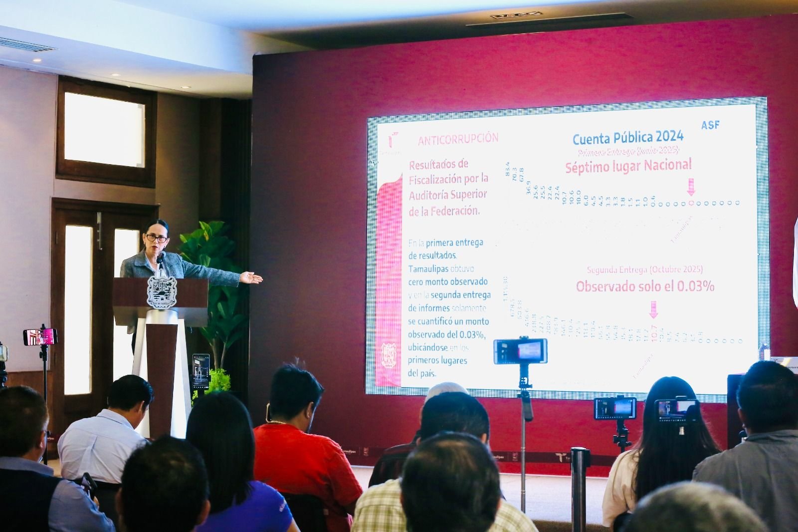 Ciudad Victoria, Tamaulipas.- Tamaulipas logró reducir las observaciones por parte de la Auditoría Superior de la Federación, lo anterior, debido a un compromiso firme durante la presente administración estatal, en aras de mantener una vigilancia y fiscalización preventiva del gasto, desde el día uno de trabajo del gobernador Américo Villarreal Anaya. En este marco, la secretaria Anticorrupción, Norma Angélica Pedraza Melo, informó que Tamaulipas se posiciona actualmente como una de las entidades con menor número de observaciones en los procesos de fiscalización realizados por la Auditoría Superior de la Federación (ASF). Detalló que, en la primera entrega de la cuenta pública 2024, el estado no registró montos observados; y en la segunda entrega efectuada en octubre de 2025, el índice de observaciones fue de apenas un 0.03 por ciento. “Estos resultados son producto de una estrecha vigilancia en los procesos administrativos y una política de cero tolerancia a la opacidad, reflejando un manejo honesto, transparente y eficiente de los recursos públicos, y alineándose con los ejes rectores del Plan Estatal de Desarrollo” expresó.