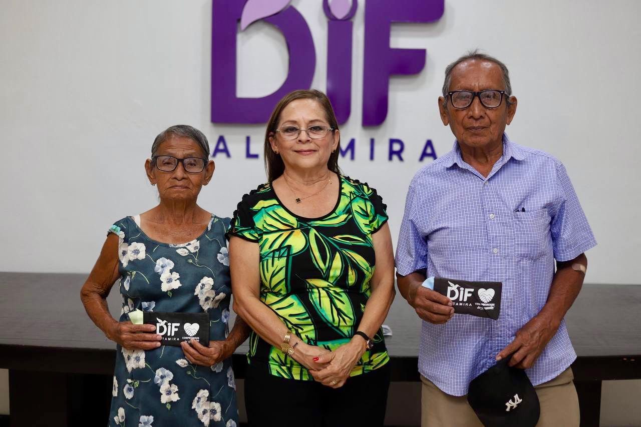 Altamira, Tamaulipas.-El Sistema para el Desarrollo Integral de la Familia en Altamira, presidido por la C.P. Rossy Luque de Martínez, realizó una destacada entrega de apoyos a seis adultos mayores que no habían podido asistir a las entregas previas de aparatos motrices, auditivos y visuales, en un evento realizado en la sala de juntas del organismo municipal.Durante el acto, la presidenta del DIF de manera personal hizo la entrega de lentes, andadores con ruedas y aparatos auditivos a los beneficiarios, brindándoles palabras de aliento y felicitación. Entre los beneficiarios se encontraron el señor Armando Celerino Anastacio y Elizabeth Domínguez Alejandre, quienes recibieron lentes; Jesús Herrera Márquez y Antonio Rodríguez Fernando, a quienes se les entregaron andadores con ruedas; y Fausto Ramos Jiménez y Arturo López Ramírez, quienes fueron beneficiados con aparatos auditivos.Además, se contó con la emotiva visita de Juan de Dios López Castillo, un niño de 7 años que se prepara para una operación de microtia programada para el 12 de septiembre próximo. Acompañado de su madre, Marisela Castillo Mancilla, el menor recibió palabras de apoyo y motivación por parte de la presidenta del organismo, quien le deseó éxito en su intervención quirúrgica. “La salud es siempre lo más importante, desde el 2021 hemos respaldado la salud de los altamirenses y así seguiremos trabajando, ese es nuestro compromiso de corazón”, sostuvo Luque de Martínez. Con estas acciones, el DIF Altamira continúa sumando en la calidad de vida de la ciudadanía a través de acciones concretas que transforman realidades.