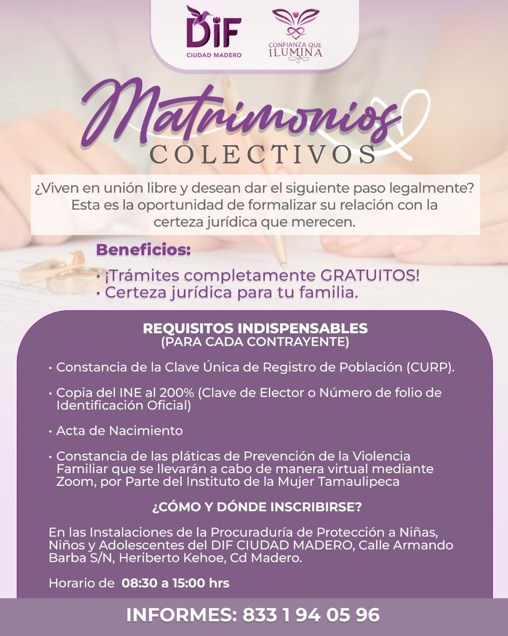 DIF CIUDAD MADERO INVITA A PAREJAS MADERENSES A PARTICIPAR EN LA CAMPAÑA DE MATRIMONIOS COLECTIVOS