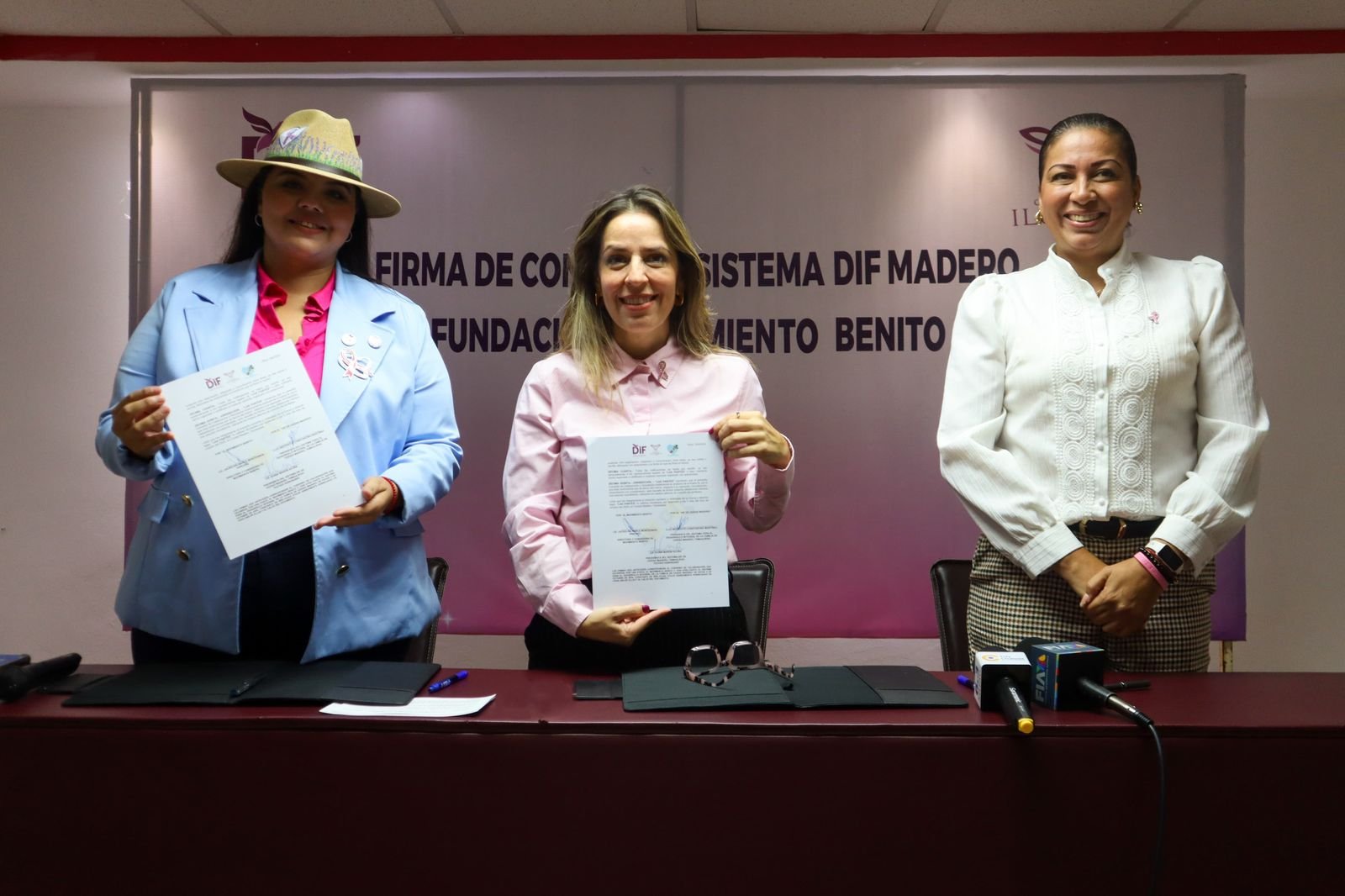 En el marco del mes de la lucha contra el cáncer de mama, el Sistema DIF Ciudad Madero, presidido por la señora Dunia Marón de González, formalizó una alianza estratégica con la Fundación Movimiento Benito, representada por la Lic. Jackeline Montesinos Sánchez, con el objetivo de sumar fortalecer acciones de prevención y sensibilización contra el cáncer de mama.