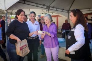 Durante el evento, la presidenta del DIF Estatal destacó el compromiso del Gobierno de Tamaulipas con el bienestar alimentario de las familias más vulnerables. «El gobernador les manda muchos saludos y está muy complacido de apoyar estos programas, en los que se pueden acercar productos frescos, que además son producidos por tamaulipecos. Es también el deseo de la presidenta Claudia Sheinbaum el tener acceso a alimentos naturales que nosotros mismos cultivamos en Tamaulipas”, expresó la doctora María de Villarreal.