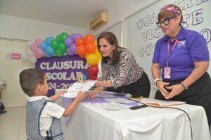 La Presidenta del Sistema DIF Tampico, Dra. Luz Adriana Villarreal Anaya, refrendó su compromiso con el cuidado y la formación inicial de la niñez, al encabezar la ceremonia de fin de Cursos de la Guardería Infantil Vicente Guerrero. En el evento la titular del organismo, felicitó a las niñas y niños, por haber completado su primer paso en la etapa preescolar, agradeciendo a los padres de familia por el respaldo y confianza otorgado al Sistema DIF. “Los felicito por ayudarle a sus hijos a alcanzar este primer paso en su vida formativa, esto no es más que el reflejo de su compromiso, de su convicción, de su amor por darle ofrecerles a sus hijos la oportunidad de iniciar con amor y confianza el camino de la educación inicial”, señaló. Villarreal Anaya, destacó que esta etapa es la más importante en la formación escolar de los menores, ya que es donde aprenden a convivir, donde hacen amigos, donde adquieren responsabilidades, pero sobretodo donde crecen y aprenden divirtiéndose. “Lo que hacemos a través del sistema de guarderías, es el de complementar la formación y el cariño que cada uno de estos niños y niñas reciben en casa, contribuir en la organización de espacios para la alimentación, el esparcimiento, la interacción y la recreación. Y al hacer esto en conjunto con los padres de familia favorece que los niños cuenten con herramientas y habilidades para su desarrollo futuro desde una edad temprana”. Por su parte la Sra. Idalia Maciel García, en representación de los padres de familia, agradeció a la Dra. Luz Adriana Villarreal y a todo el equipo docente, por cuidar con amor de los pequeños. “Les doy las gracias por cuidar de nuestros hijos, gracias por quererlos y sacarlos adelante, porque cuidar de todos ellos no es fácil, han disfrutado de una etapa muy bonita gracias a ustedes”, señaló. En el evento estuvieron presentes, Martha Lilia Maldonado, Subdirectora de los Centros de Asistencia Infantil Comunitarios y Guarderías del DIF Tampico, y Esperanza Guevara Meza, Coordinadora de la Guardería Vicente Guerrero.