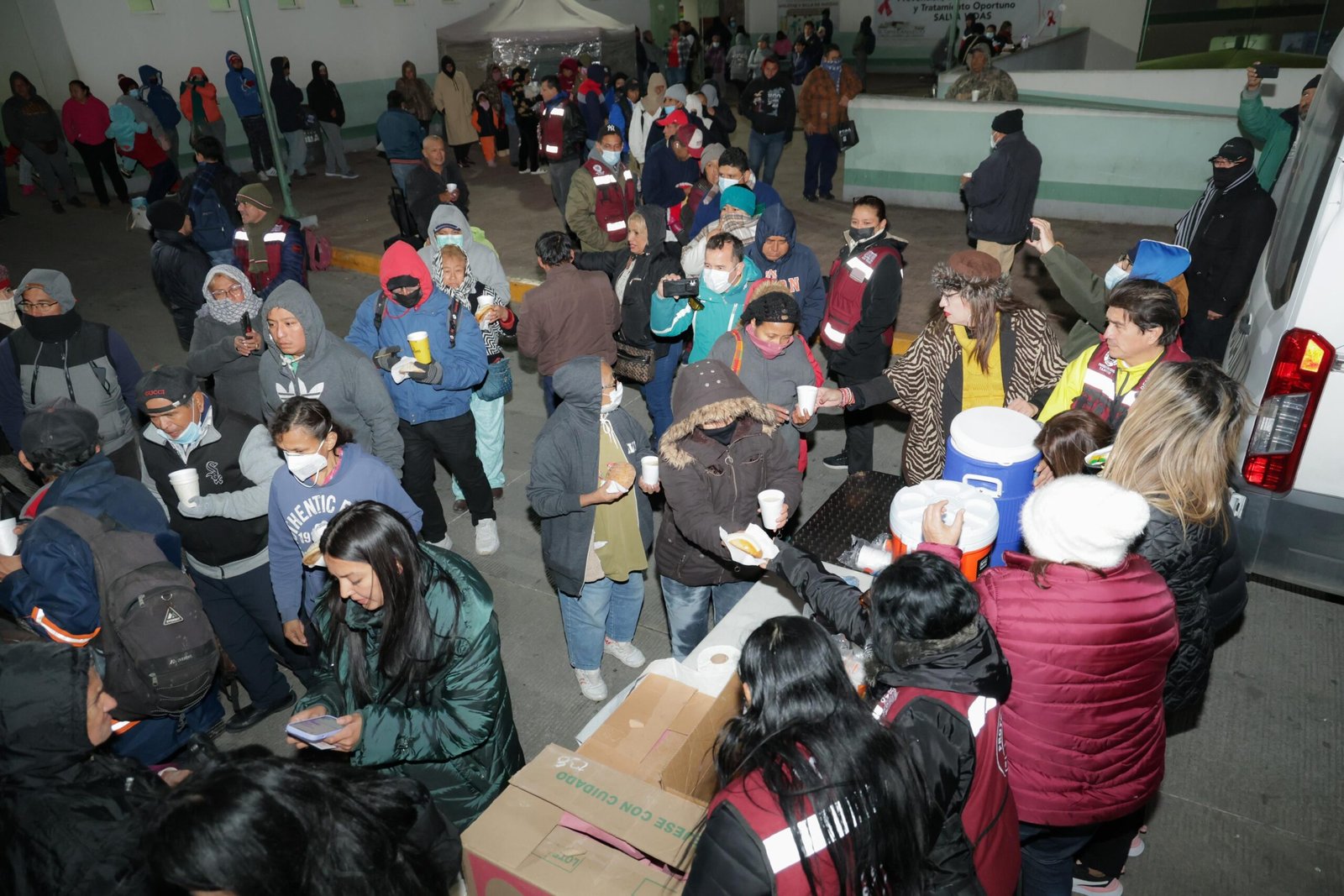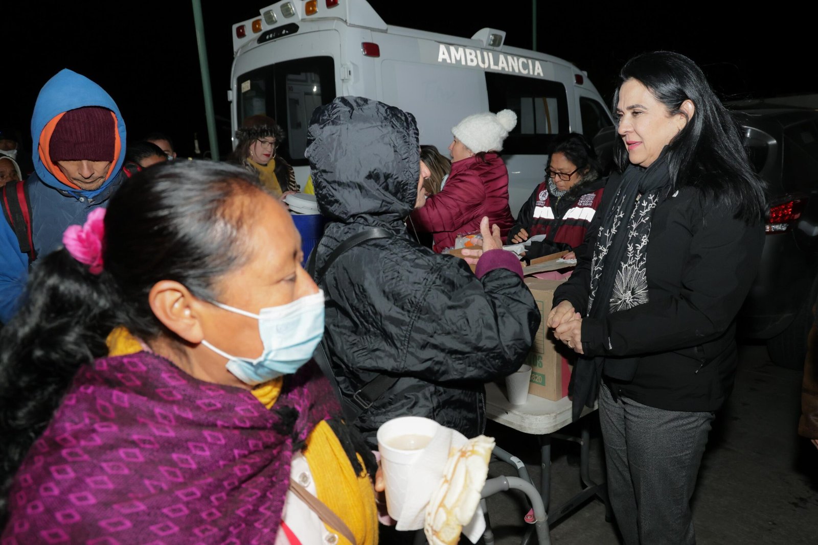 Adriana Villarreal Anaya encabezaron la entrega de cobijas, ropa invernal, y bebidas calientes a familiares de pacientes internados en el Hospital General «Dr. Carlos Canseco».En la jornada de apoyo, cuyo propósito fue el de brindar un cálido abrigo a las personas que aguardan en el exterior del nosocomio, participó también personal de la Dirección de Protección Civil y del propio Sistema DIF Tampico.