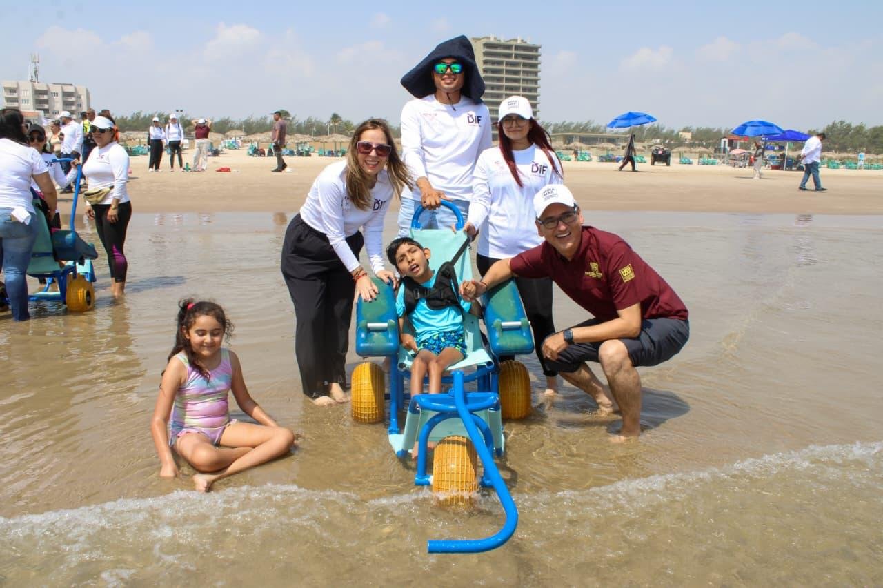 Erasmo González Robledo, en el que participaron niñas, niños y adolescentes muy especiales. En un ambiente de alegría, integración y recreación, niñas, niños y jóvenes con discapacidad que participaron en el Campamento de Verano Inclusivo 2025 del Sistema DIF Ciudad Madero, disfrutaron este sábado de una convivencia especial en la Playa Incluyente de Miramar, acompañados de sus familias.