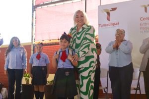 Agosto 26 de 2024.-Matamoros, Tamaulipas.- En representación del gobernador de Tamaulipas, Américo Villarreal Anaya, la secretaria de Finanzas del estado, Adriana Lozano Rodríguez, acudió a la ciudad de Matamoros para dar inicio al Ciclo Escolar 2024-2025.Frente a estudiantes, maestros y padres de familia de la Escuela Primaria Adalberto J. Arguelles, la tesorera estatal expresó: «Iniciamos este nuevo ciclo escolar con la esperanza de continuar una política educativa humanista e inclusiva, en la que, sin importar el lugar, el origen o la condición social, todas y todos reciban una educación de excelencia científica y con un fuerte arraigo en nuestra comunidad. Ese es el deseo y el propósito de nuestro gobernador, Américo Villarreal Anaya, quien este día les envía un caluroso abrazo». En el municipio de Matamoros, el Gobierno de Tamaulipas entregó 84,605 útiles escolares y un total de 567,309 libros de texto gratuitos para niños, niñas y adolescentes que este día regresaron a sus salones de clases.Por su parte, la maestra Gloria Cruz Murillo, directora de la institución educativa, agradeció la presencia de la titular de la Secretaría de Finanzas, a quien pidió externar un saludo para el gobernador Américo Villarreal Anaya.