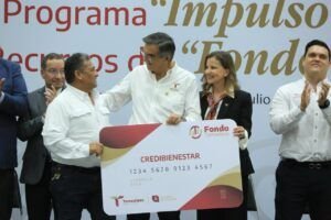 Ciudad Victoria, Tamaulipas.- El gobernador Américo Villarreal Anaya entregó apoyos a emprendedores del Fondo Tamaulipas que este año colocará más de 33 millones de pesos en apoyo a más de 1,800 beneficiarios y puso en marcha el programa Impulso Económico que por segundo año consecutivo superará los mil millones de pesos para dinamizar la economía del Estado, fortalecer el mercado interno e impulsar el crecimiento y expansión de las micro y pequeñas empresas. Durante la ceremonia de honores a la bandera, este lunes, en el Polyforum de esta capital, el gobernador entregó de manera simbólica recursos a cinco grupos de beneficiarios de los Programas Microcrédito, Microemprendedor y Credi Bienestar, de los municipios de Jiménez, Jaumave, San Fernando, Victoria y del SIPRODDIS y reconoció el apoyo de Nacional Financiera (NAFIN) para beneficiar a los emprendedores para que puedan acceder a créditos con tasas preferenciales, lo que permite apuntalar uno de los objetivos del Plan México que se refiere precisamente al financiamiento a micro, pequeñas y medianas empresas. “Esta es una vertiente a la que los gobiernos de la Cuarta Transformación, le hemos otorgado relevancia, hemos diversificado el acceso al crédito con montos y plazos escalonados para hacerlos más accesibles, con tasas de interés preferenciales más bajas que las tasas del mercado y pensados para apoyar el inicio de nuevos negocios, para emprender o bien para consolidar alguna operación productiva ya existente”, expresó. Acompañado por Rafael Pérez Ocaña, director regional noreste de Nacional Financiera y ante la presencia de alcaldes y alcaldesas, Villarreal Anaya aseguró que su gobierno trabaja buscando justicia, mejores equilibrios sociales y regionales para que el bienestar social sea efectivamente cada vez más equitativamente distribuido. “Se trata de que el desarrollo llegue a todas partes, que nadie se quede fuera, que nadie se quede atrás, por eso decidimos llevar atención especial a los municipios más pequeños, estar con las familias y generar oportunidades en donde aún son escasas”, indicó. En tanto que, Pérez Ocaña reconoció que gracias al programa Impulso Económico y al respaldo del Fondo Tamaulipas, en el estado se aprecia un mercado interno dinámico, condiciones favorables para la inversión y confianza en los entes económicos tamaulipecos. Asimismo, reiteró todo el apoyo de NAFIN para seguir potenciando las aportaciones tanto del Gobierno del Estado como de los municipios, para impulsar el desarrollo económico y social apoyando a las micros, pequeñas y medianas empresas, facilitando el acceso al financiamiento y entregando servicios de desarrollo empresarial.